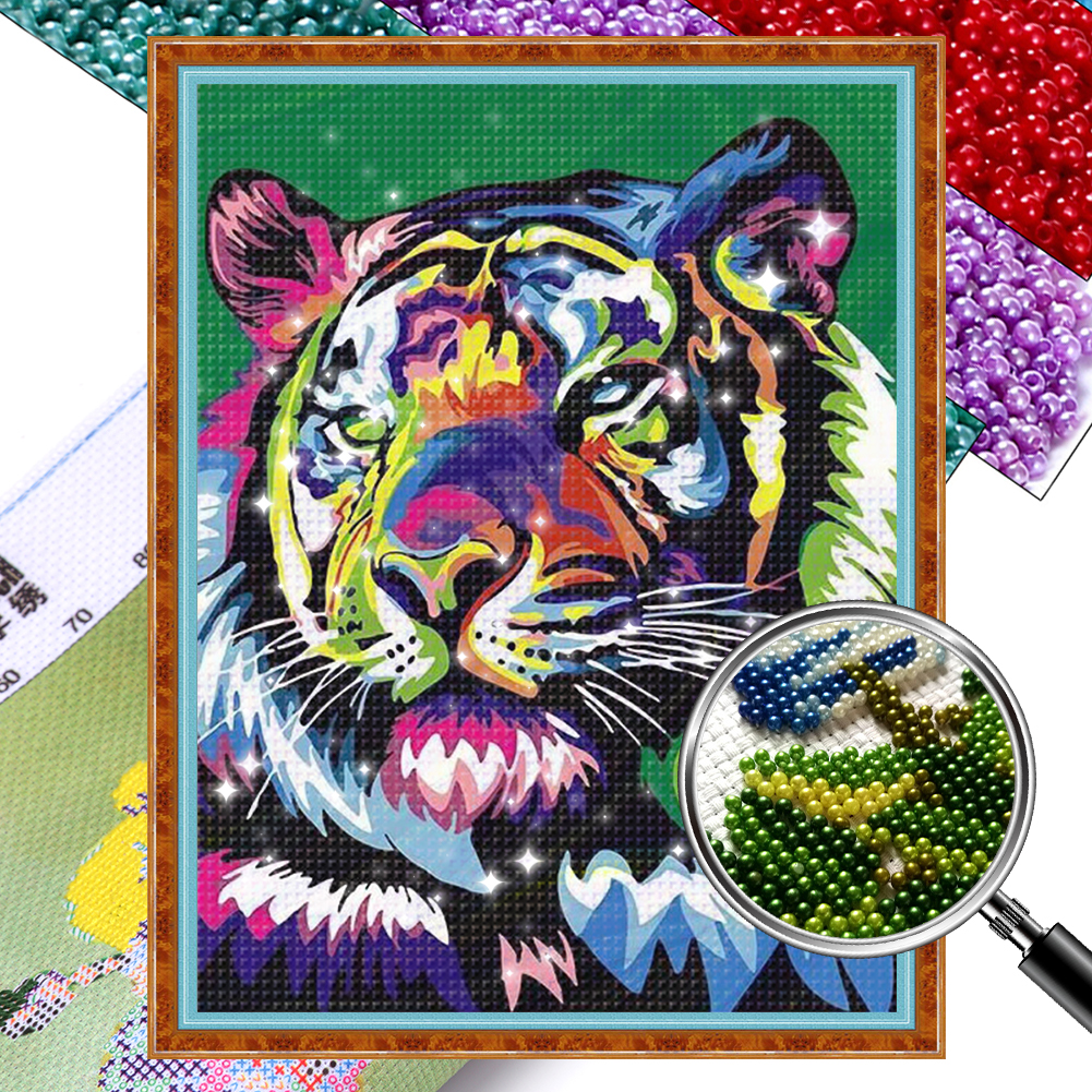9CT Full Stamped Cross Stitch Bead Embroidery- Tiger(Canvas|39*54CM)