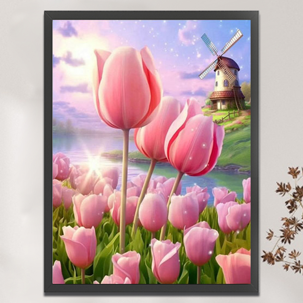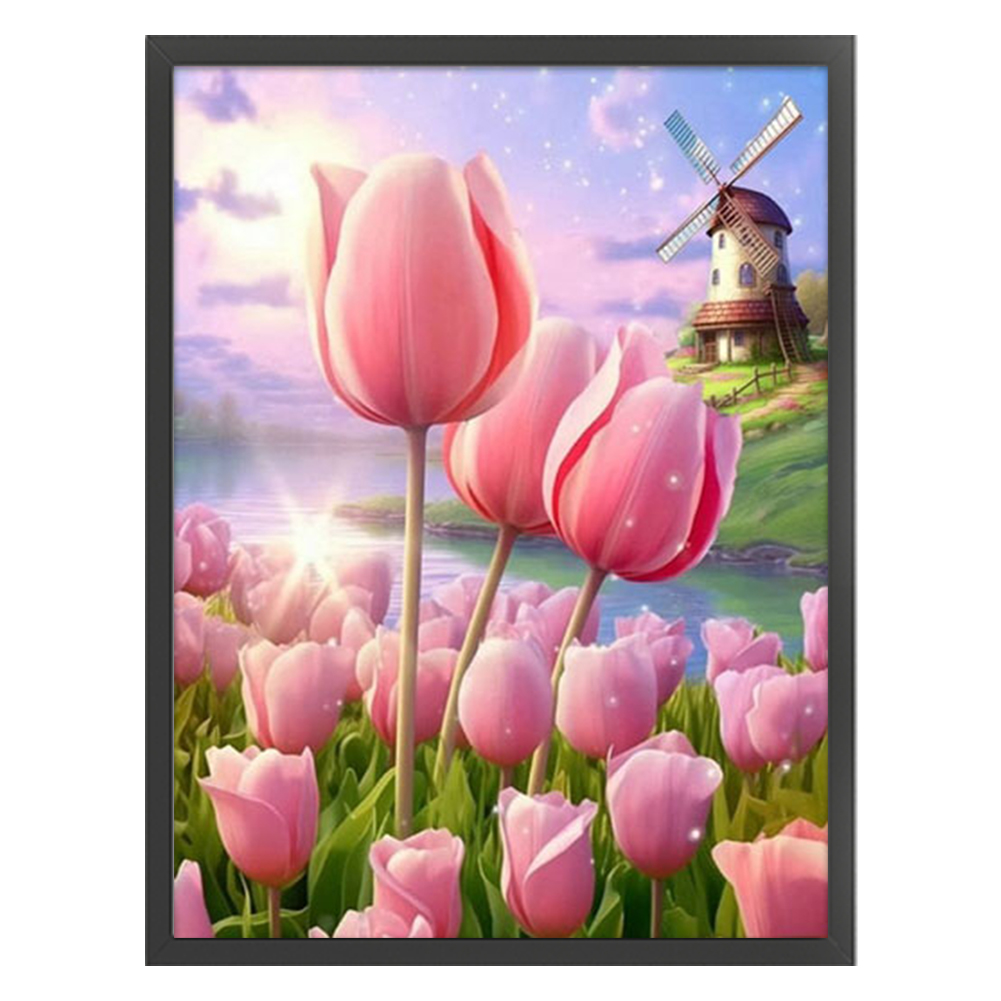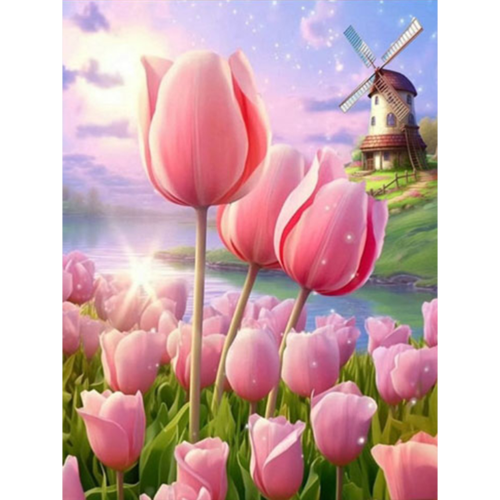 9CT Full Stamped Cross Stitch Bead Embroidery- Tulip(Canvas|44*62CM)