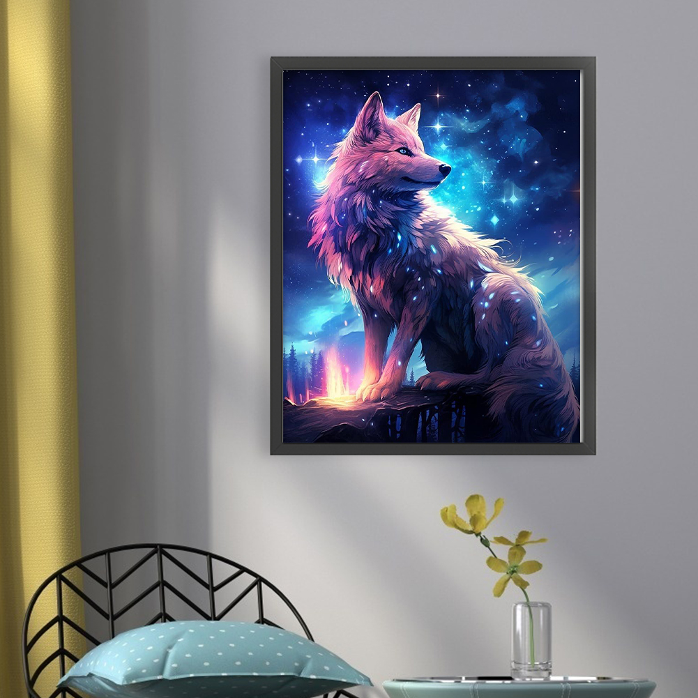 9CT Full Stamped Cross Stitch Bead Embroidery- Wolf(Canvas|41*50CM)