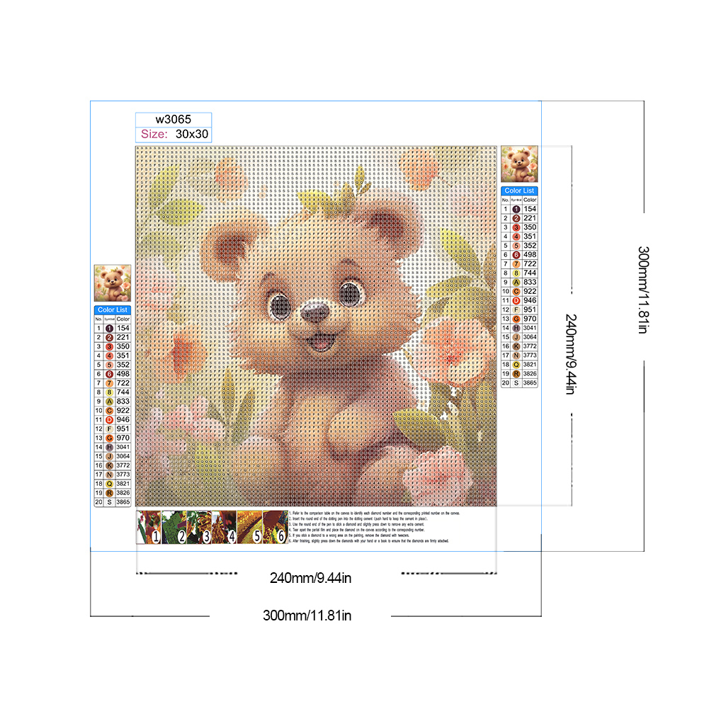 Canvas size: Approx.30x30cm/11.81x11.81in (1cm=0.39in)
