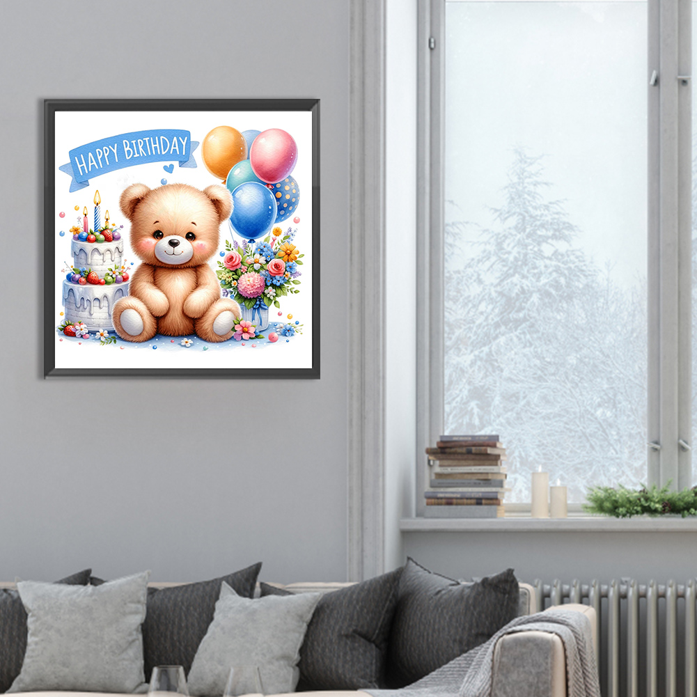 Diamond Painting - Full Round Drill - Birthday Bear(Canvas|30*30cm)