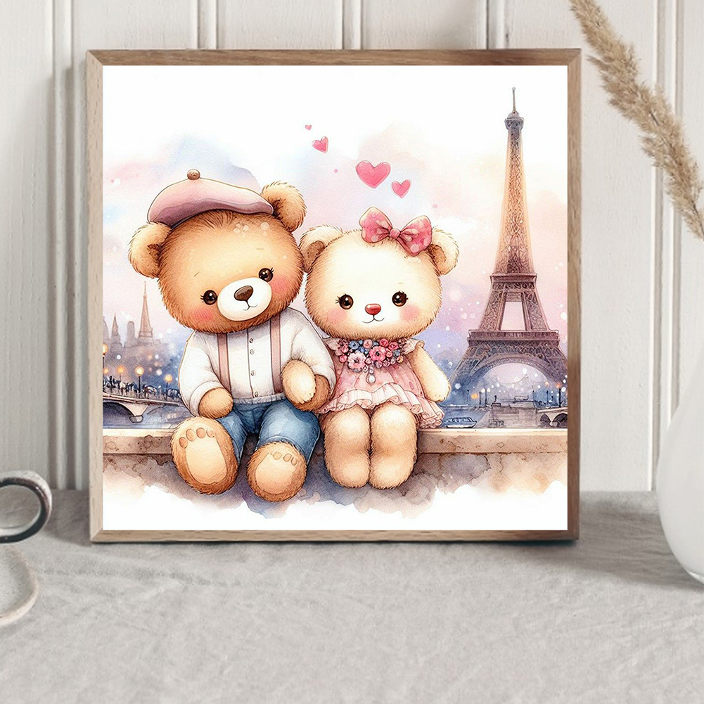 Diamond Painting - Full Round Drill - Couple Bear Eiffel Tower(Canvas|40*40cm)