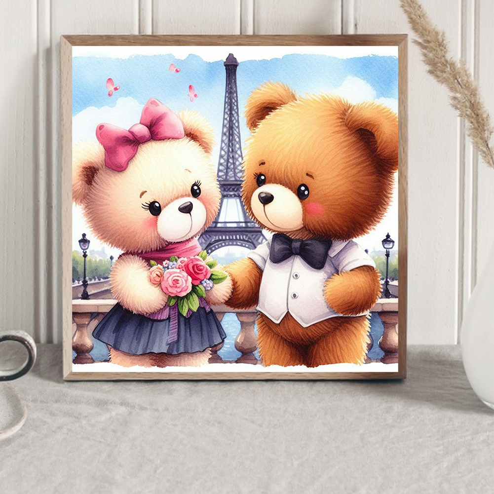 Diamond Painting - Full Round Drill - Couple Bear Eiffel Tower(Canvas|40*40cm)