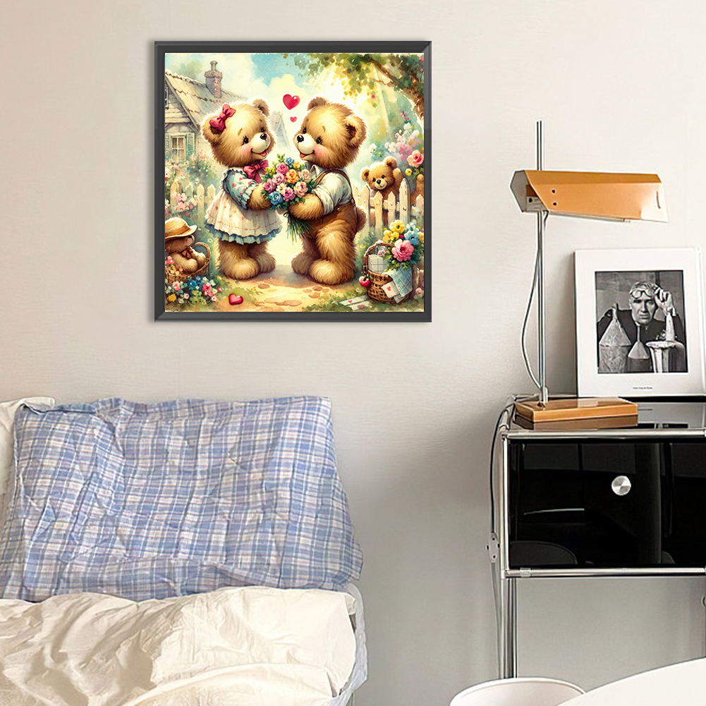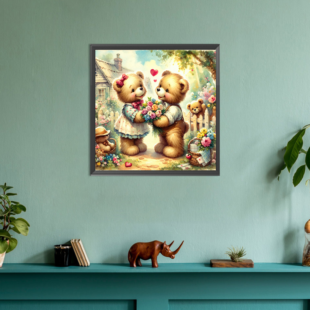 Diamond Painting - Full Round Drill - Rose Heart Bear(Canvas|30*30cm)