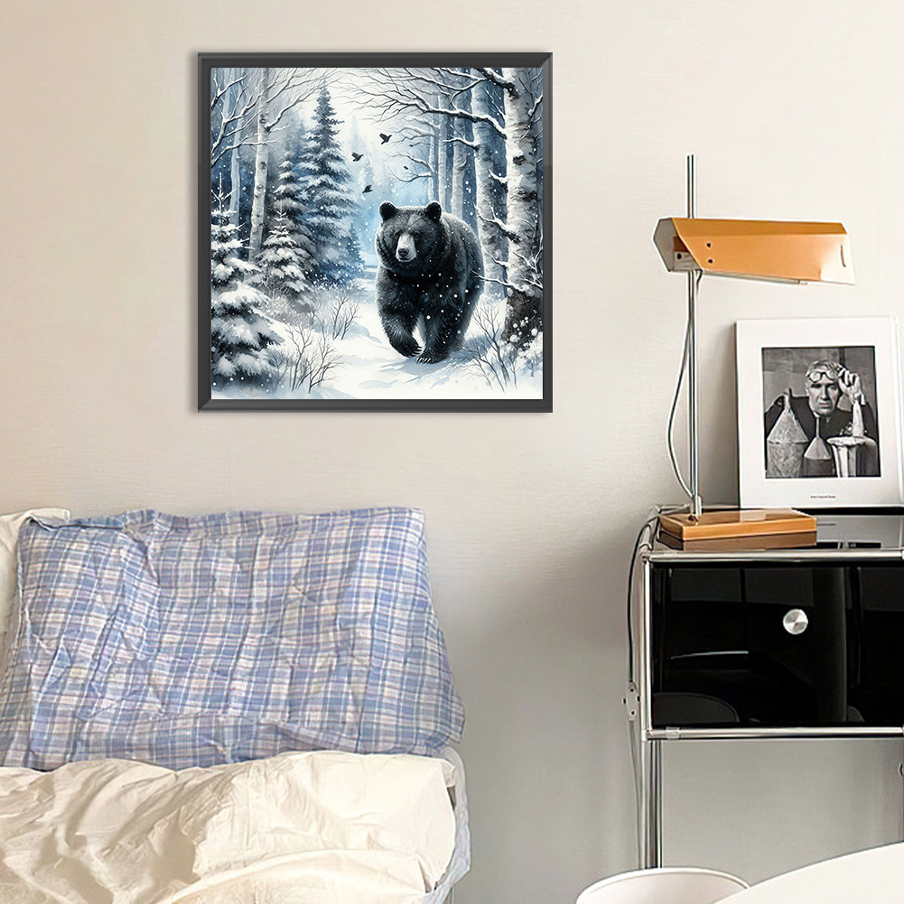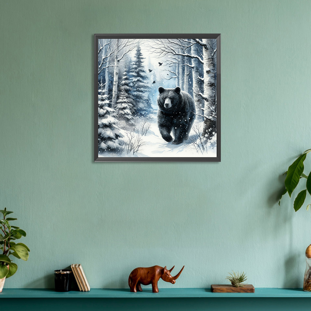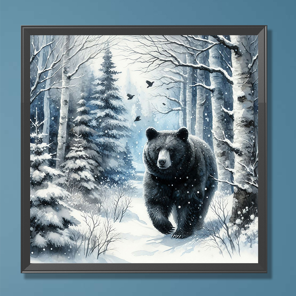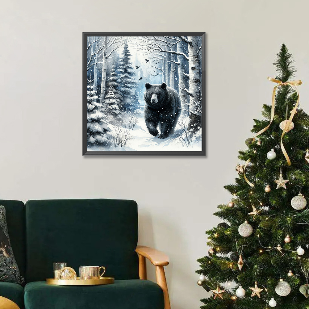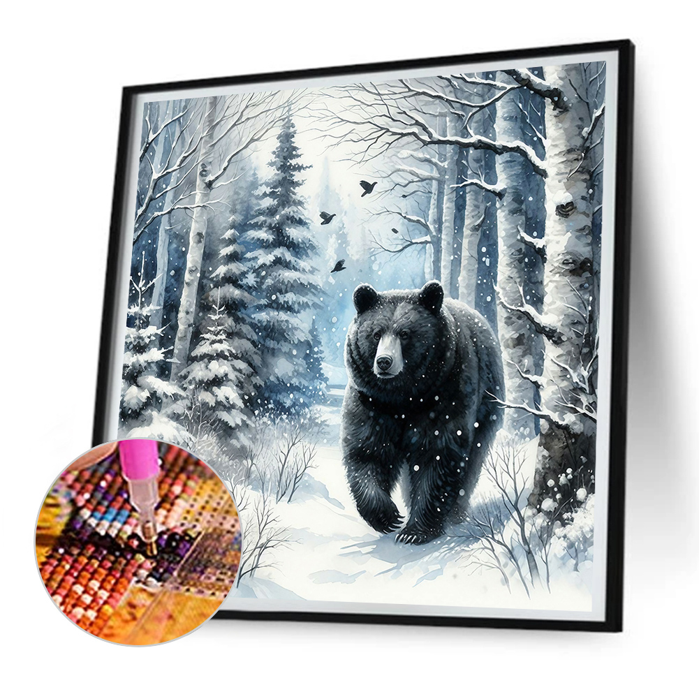 Diamond Painting - Full Round Drill - Winter Black Bear(Canvas|30*30cm)