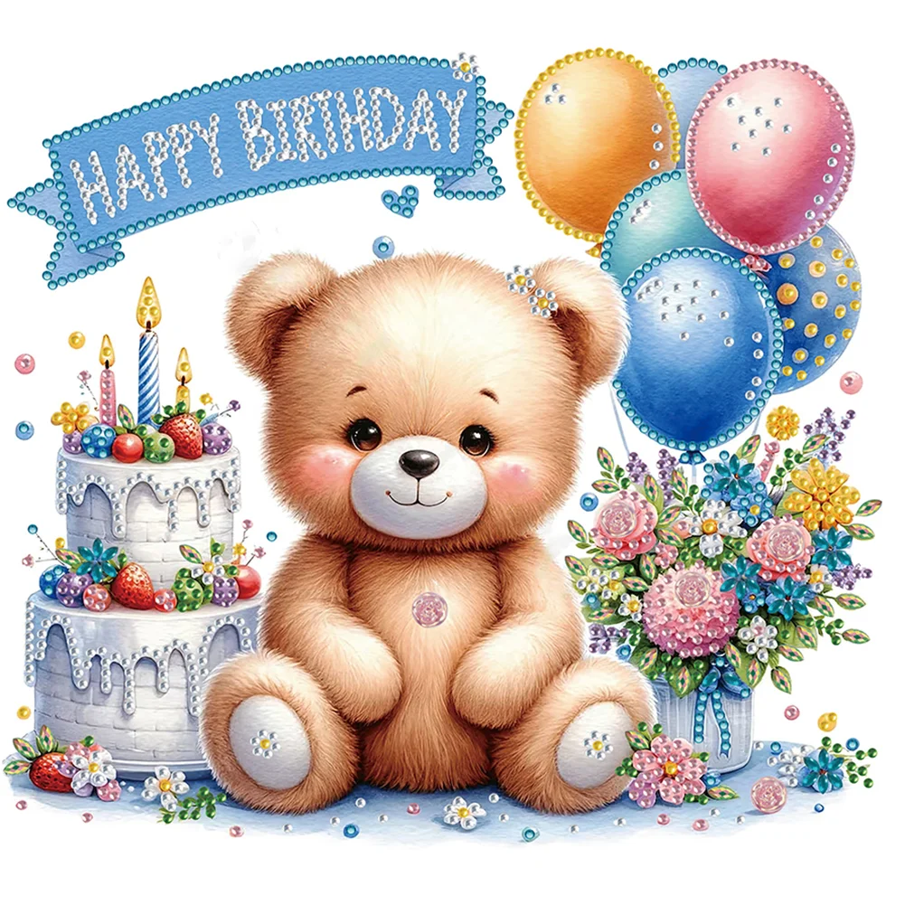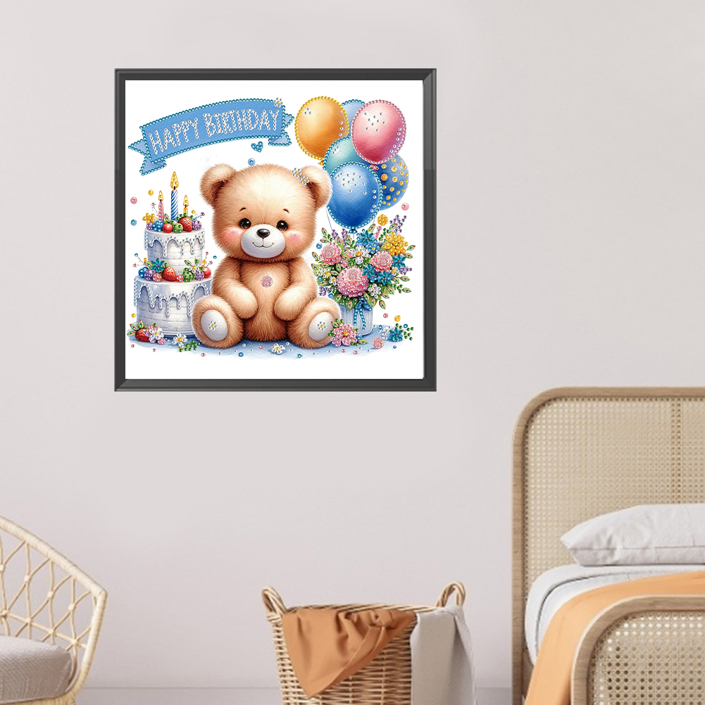 Diamond Painting - Partial Special Shaped Drill - Birthday Teddy Bear(Canvas|30*30cm)