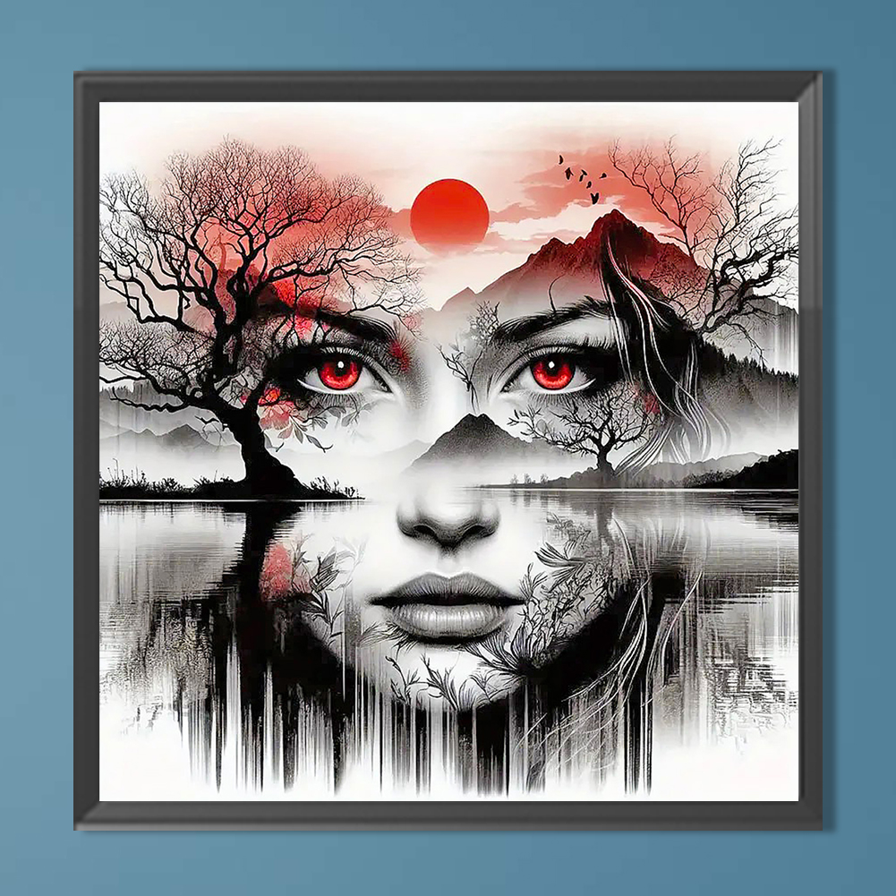 Diamond Painting - Full Round Drill - Girl Face Tree(Canvas|50*50cm)