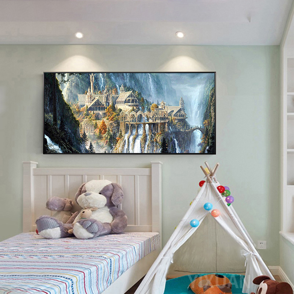5D DIY Diamond Painting Mountain Attic Full Square Drill Mosaic Wall Art Picture of Rhinestone Home Decoration