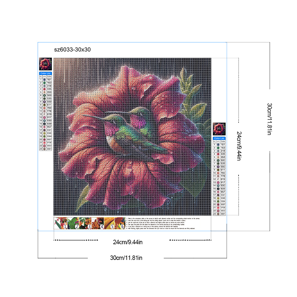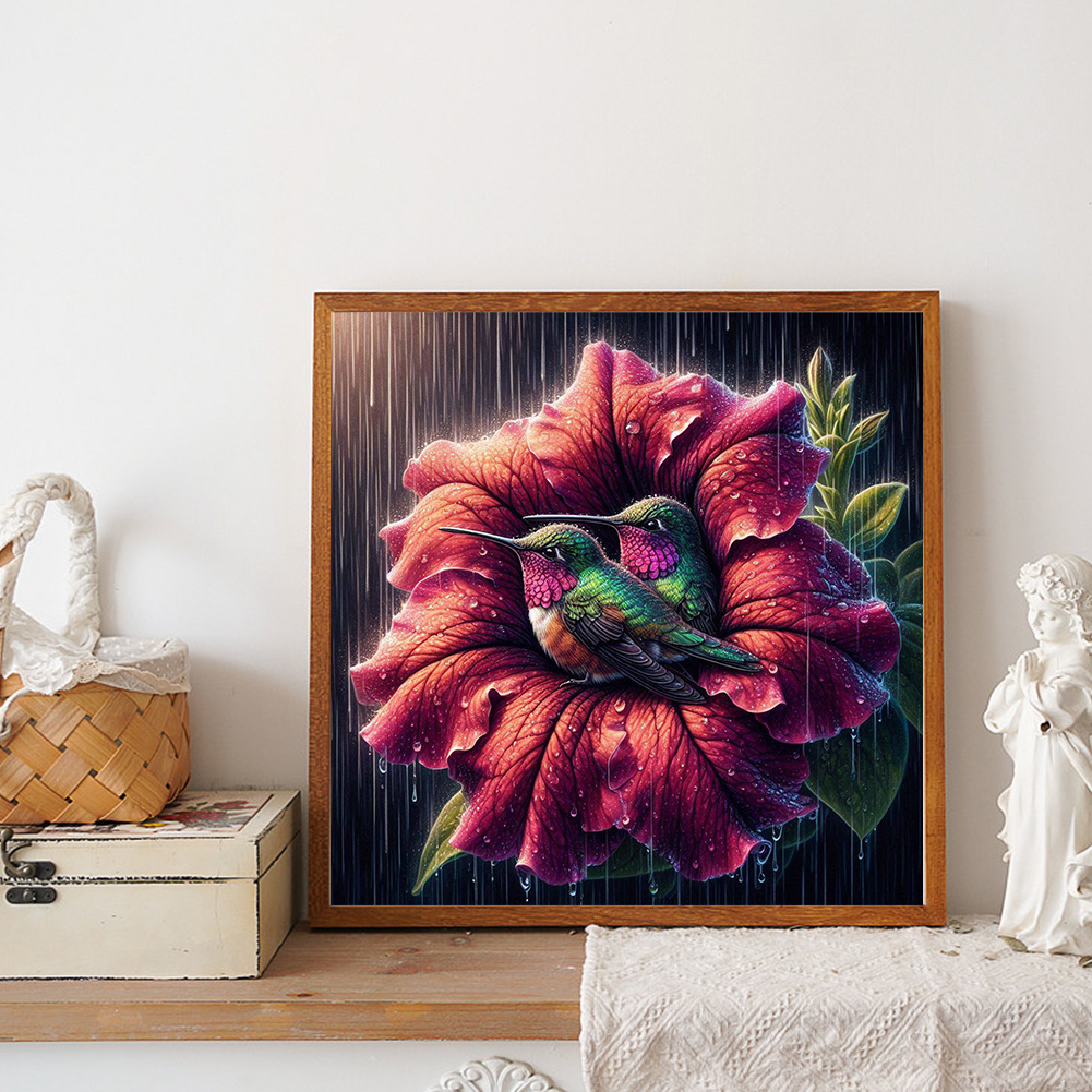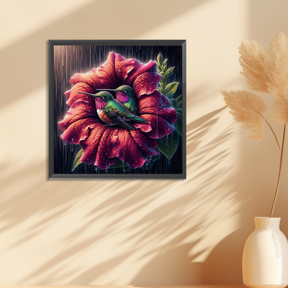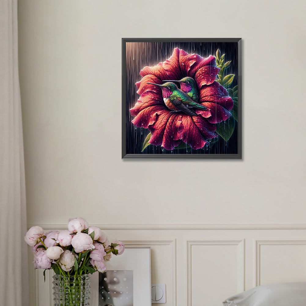 Diamond Painting - Full Round Drill - Flower Hummingbird(Canvas|30*30cm)