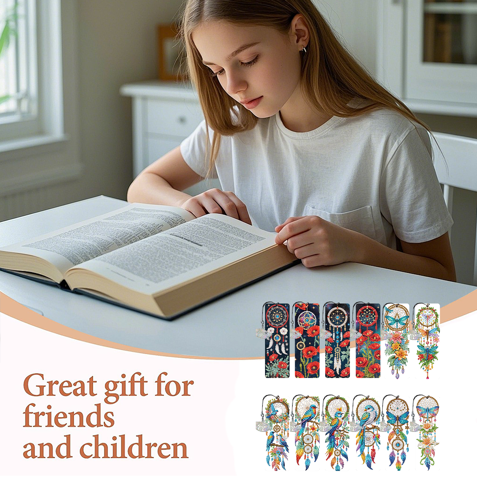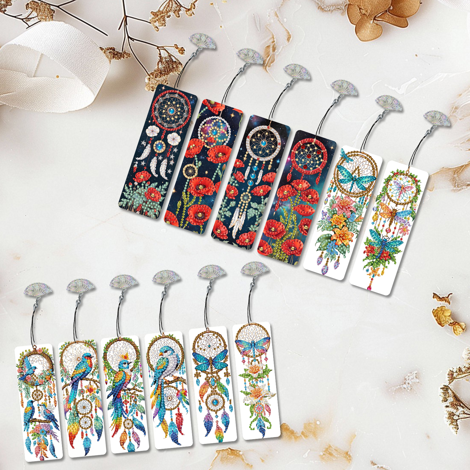 12Pcs Dreamcatcher DIY Diamond Painting Bookmarks Readers Home Office Book Decor