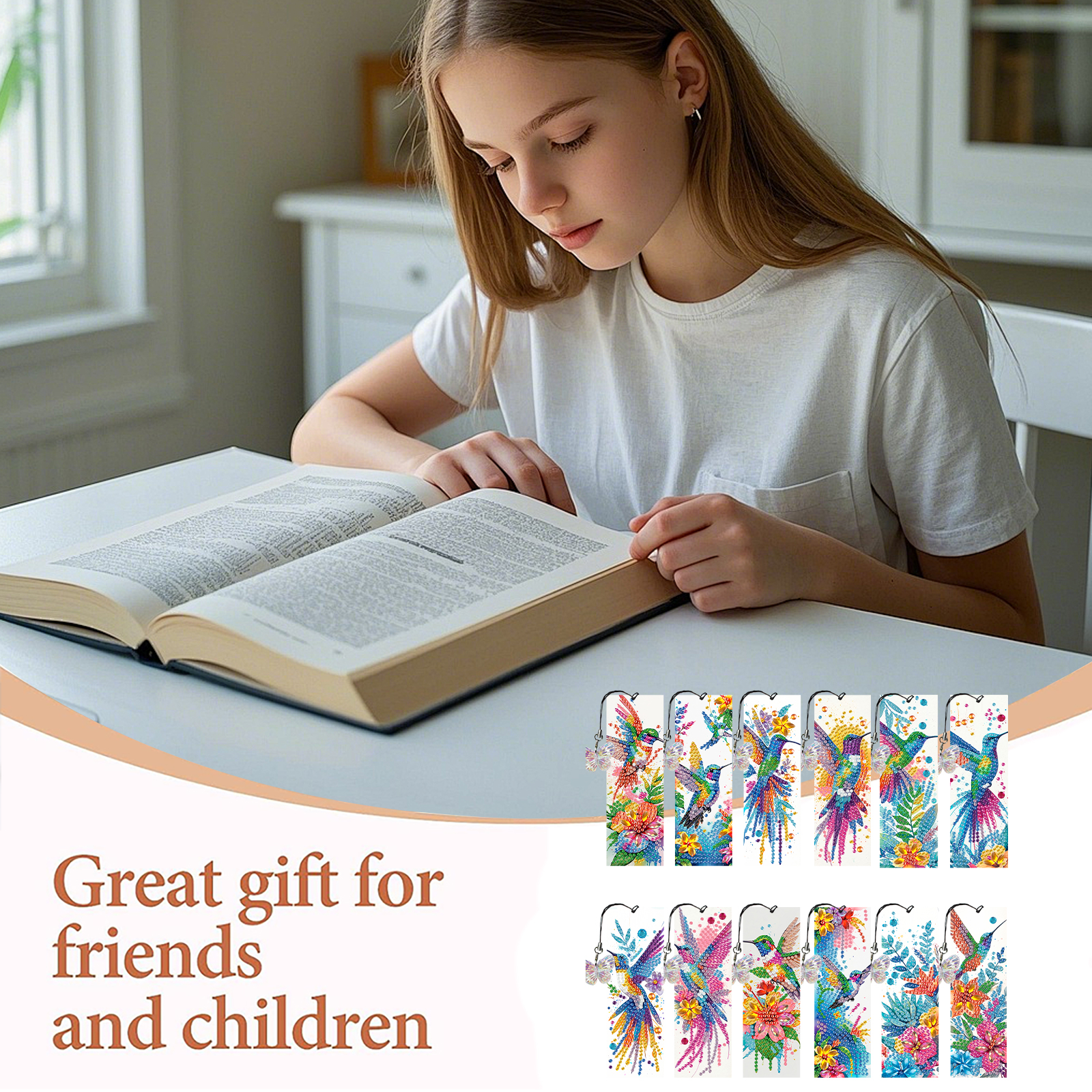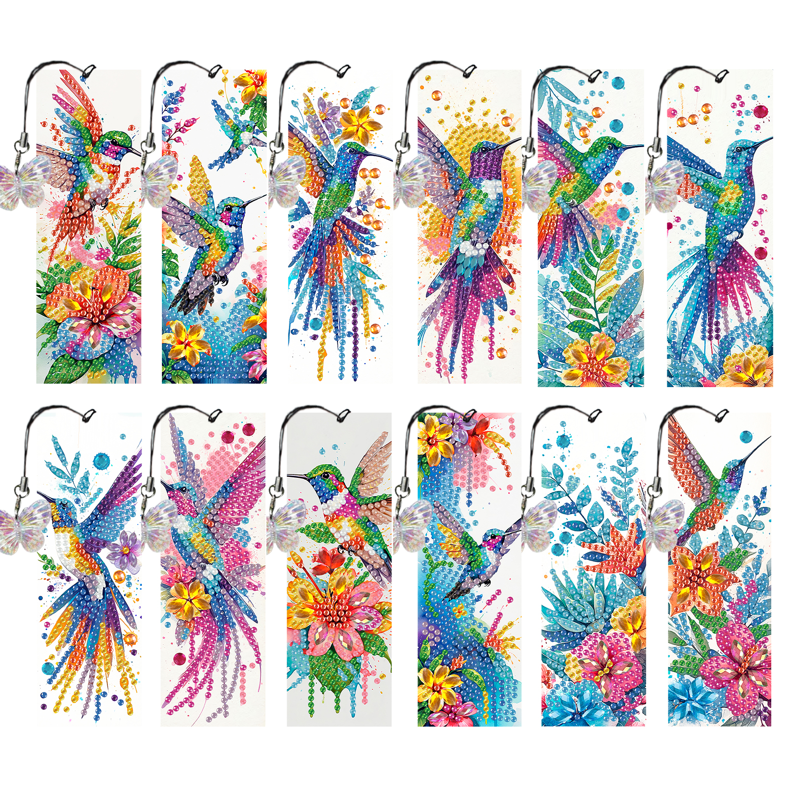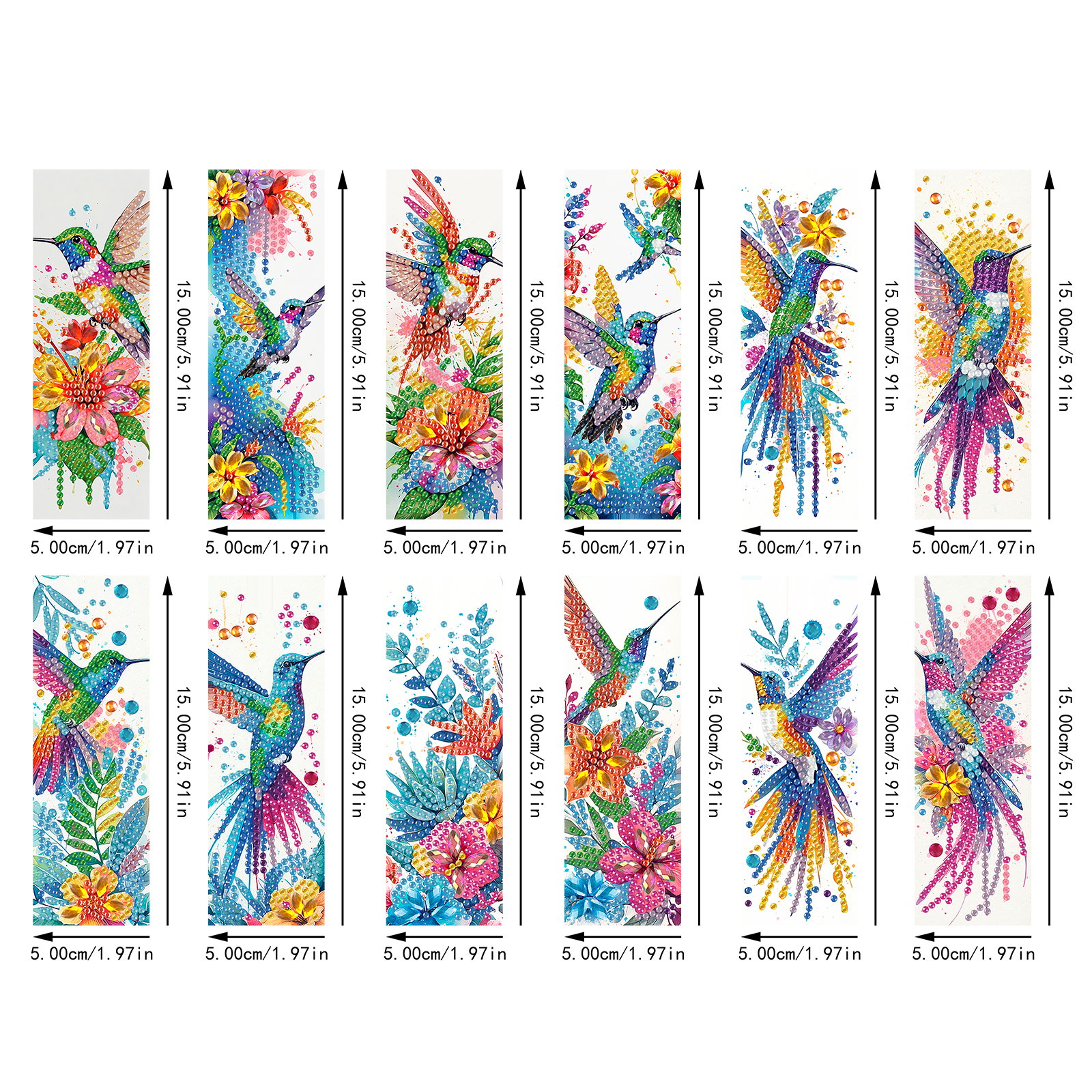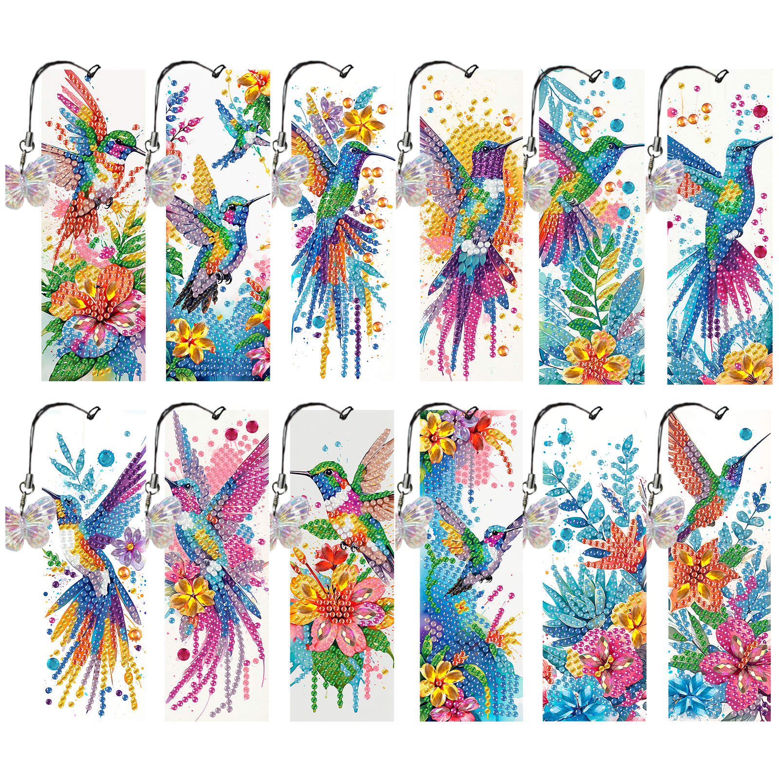 12Pcs Hummingbird DIY Diamond Art Painting Bookmark for Reading Enthusiasts