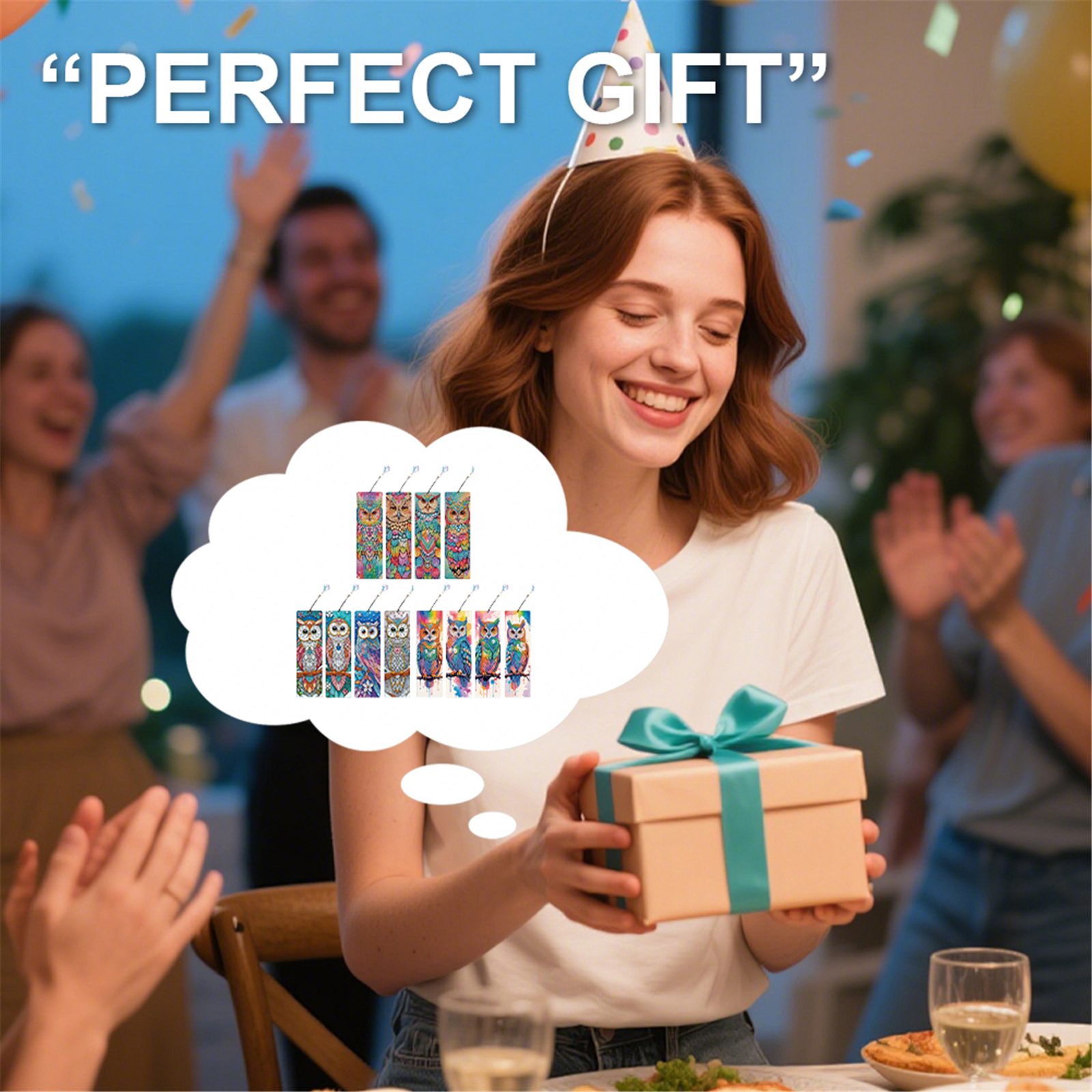 12Pcs Owl DIY Diamond Painting Bookmark with Crystal Pendant for Book Decor