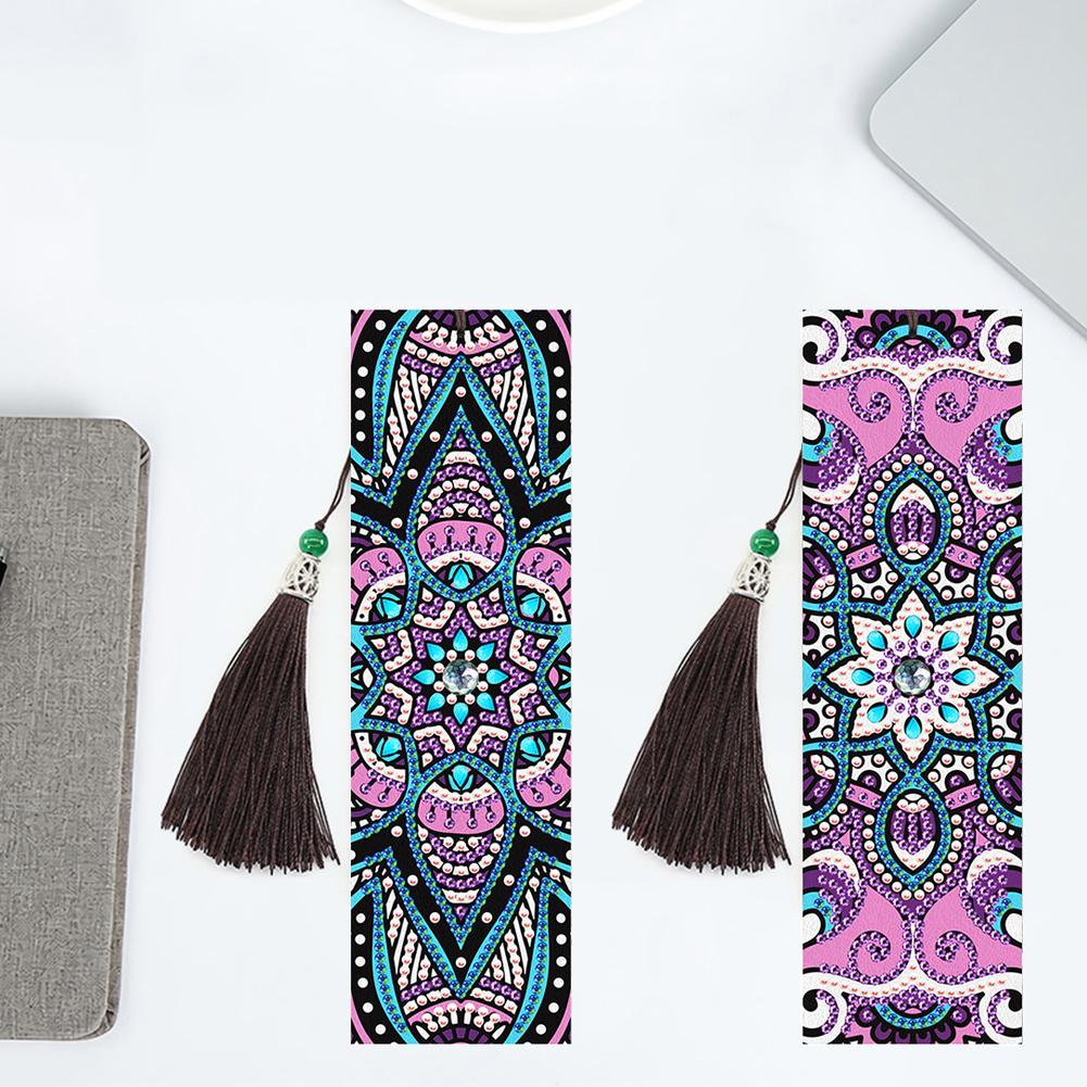 2pcs 5D Mosaic Bookmark Tassel Diamond Painting Cross Stitch Page-marker