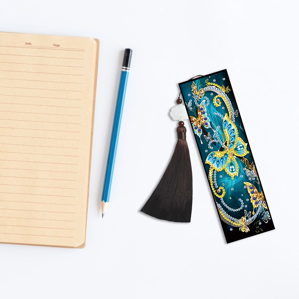 2pcs DIY Diamond Painting Leather Bookmark Butterfly Tassel Crafts