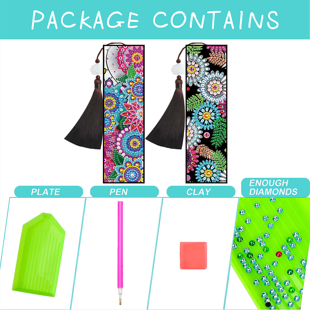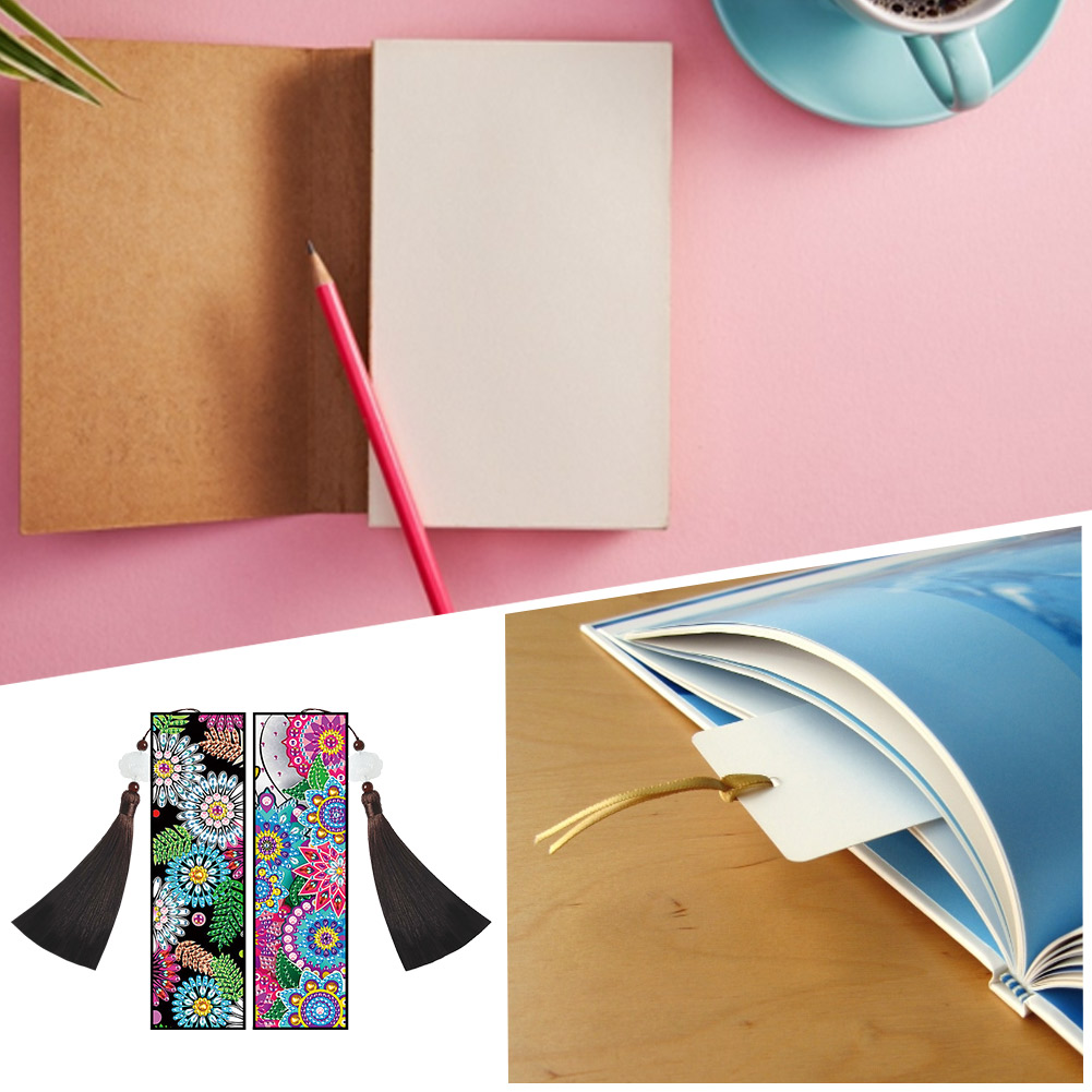 2pcs DIY Diamond Painting Leather Bookmark Mandala Tassel Crafts