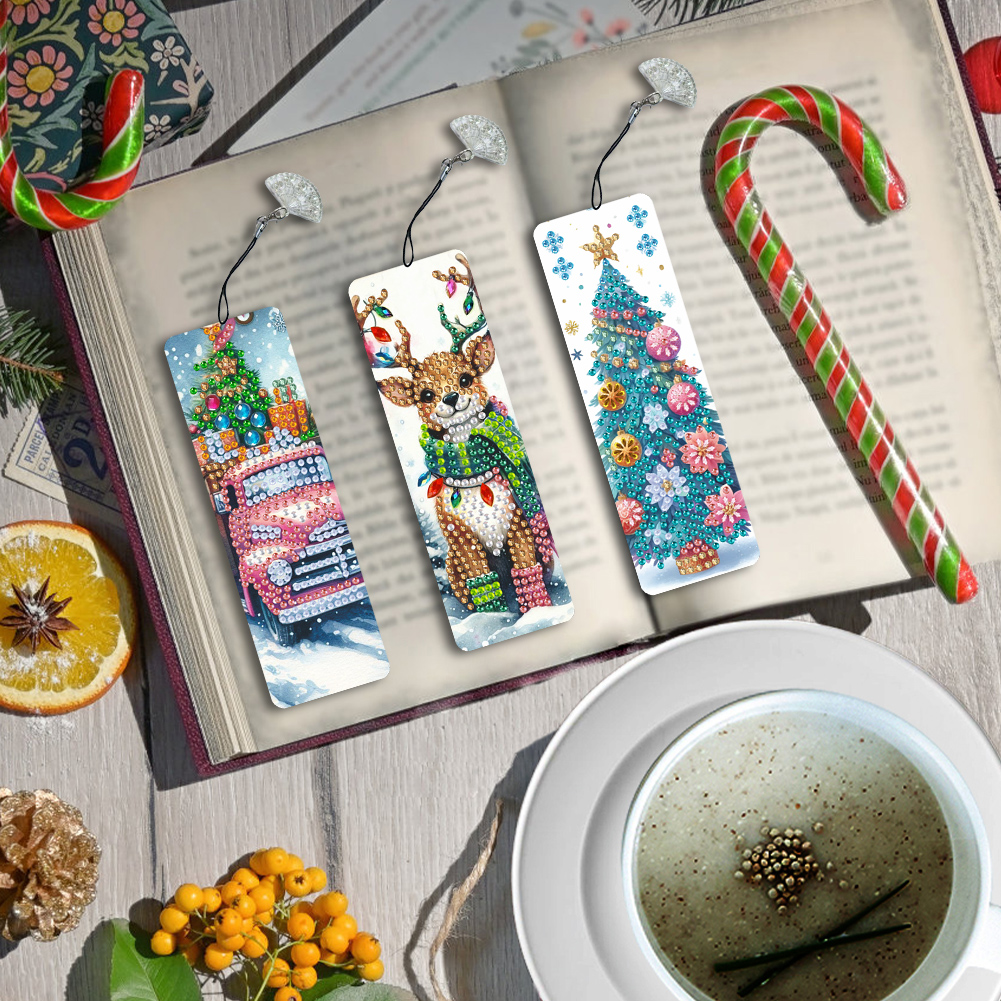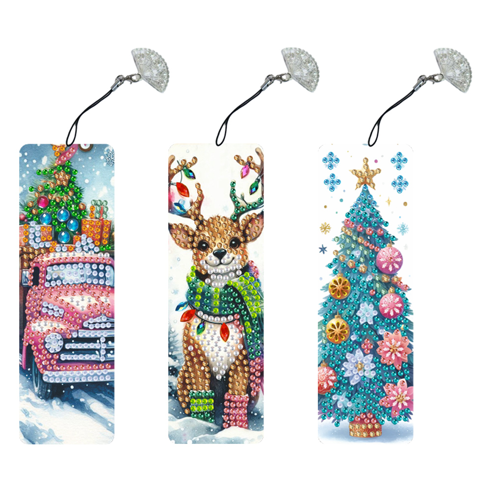 3Pcs Special Shape Christmas Tree Elk Truck Diamond Painting Bookmark