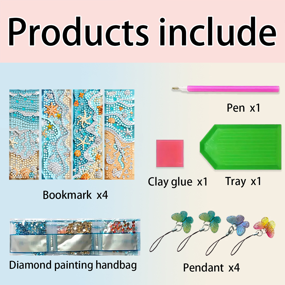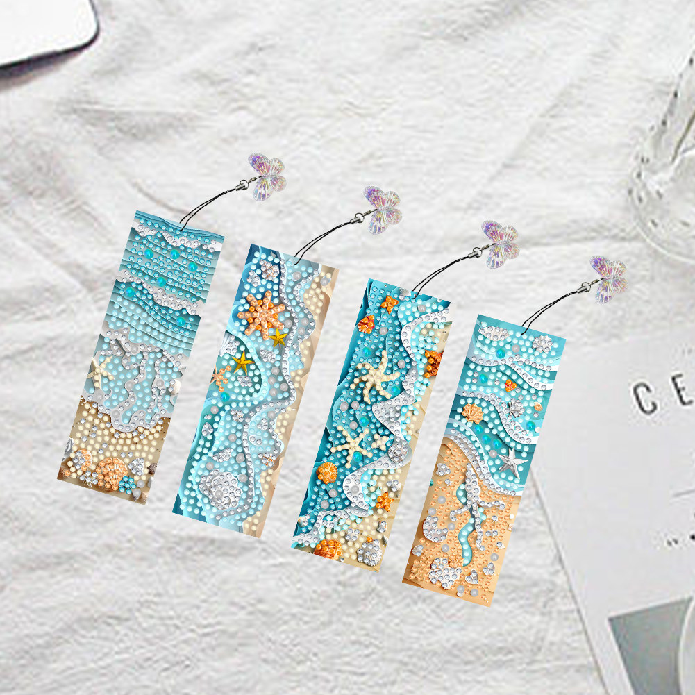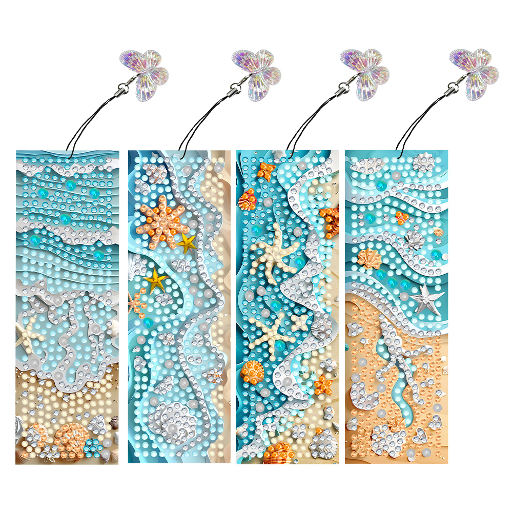 4Pcs DIY Beach Starfish Special Shape Diamond Painting Bookmark Art Project for Book Lovers