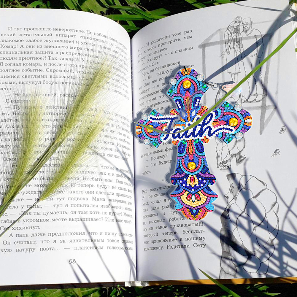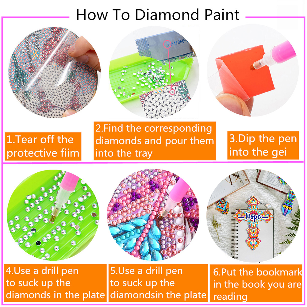 6pcs DIY Cross Diamond Painting Bookmarks with Crystal Pendant(Single Sided)
