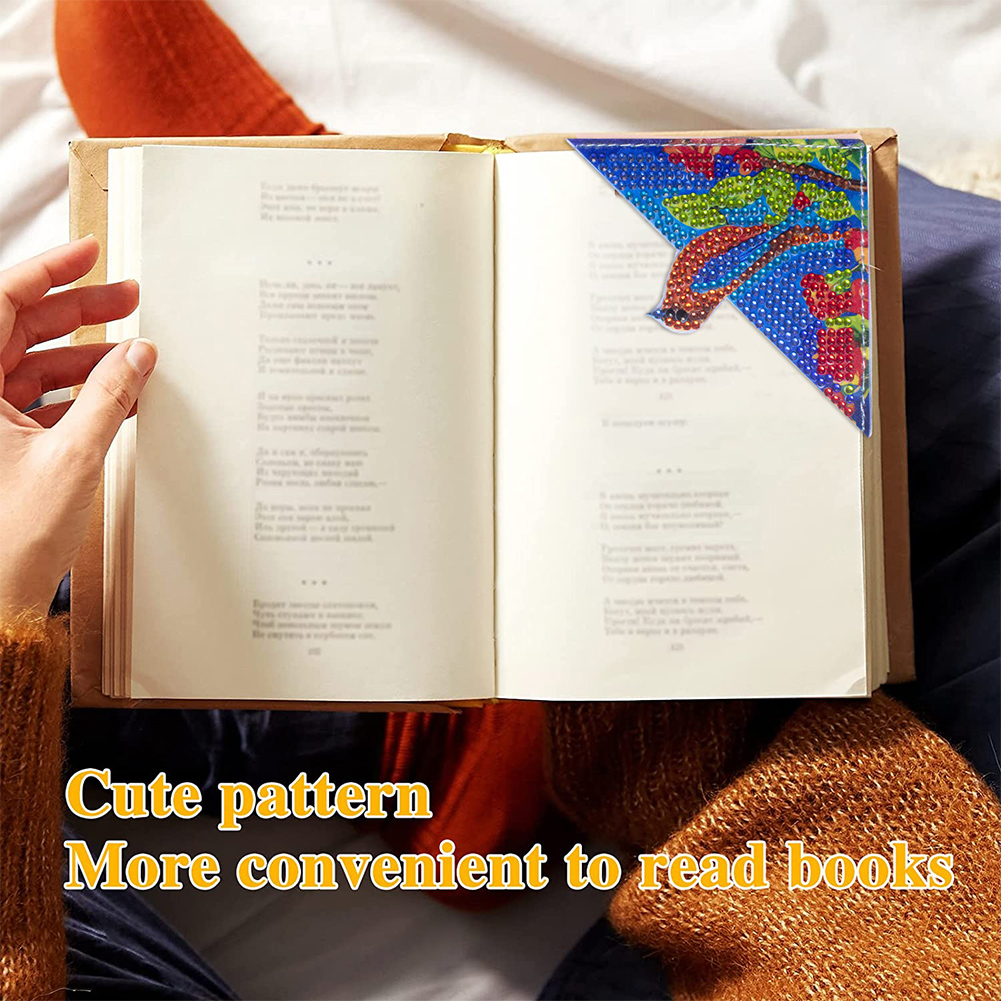 4pcs DIY Bird Diamond Art Bookmarks Art Craft 5D Leather Triangle Page Book Marks