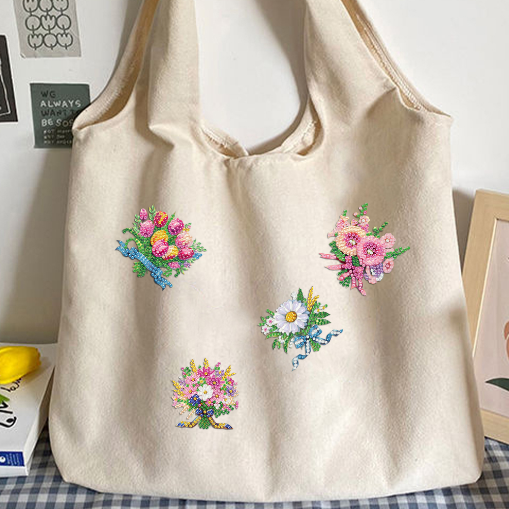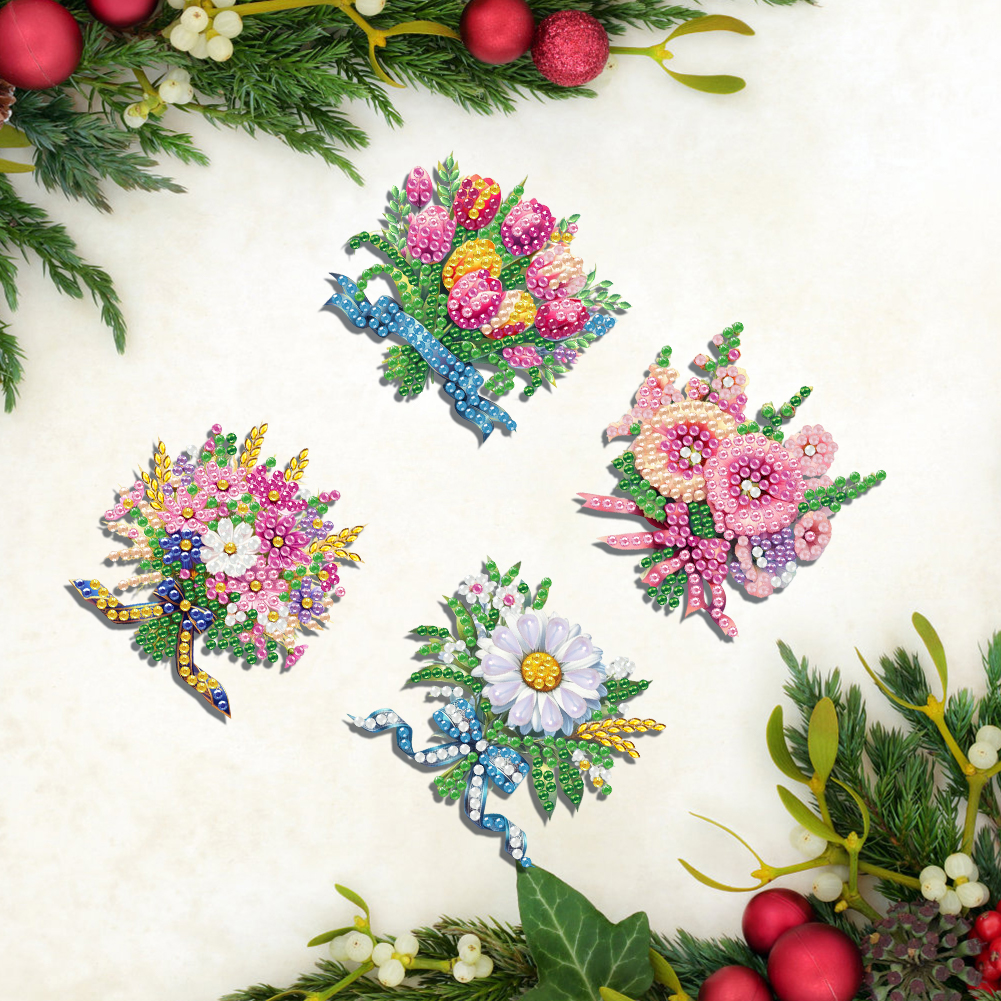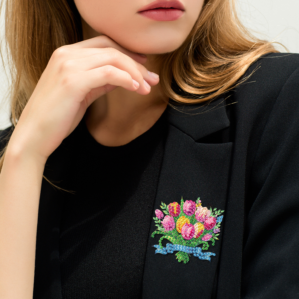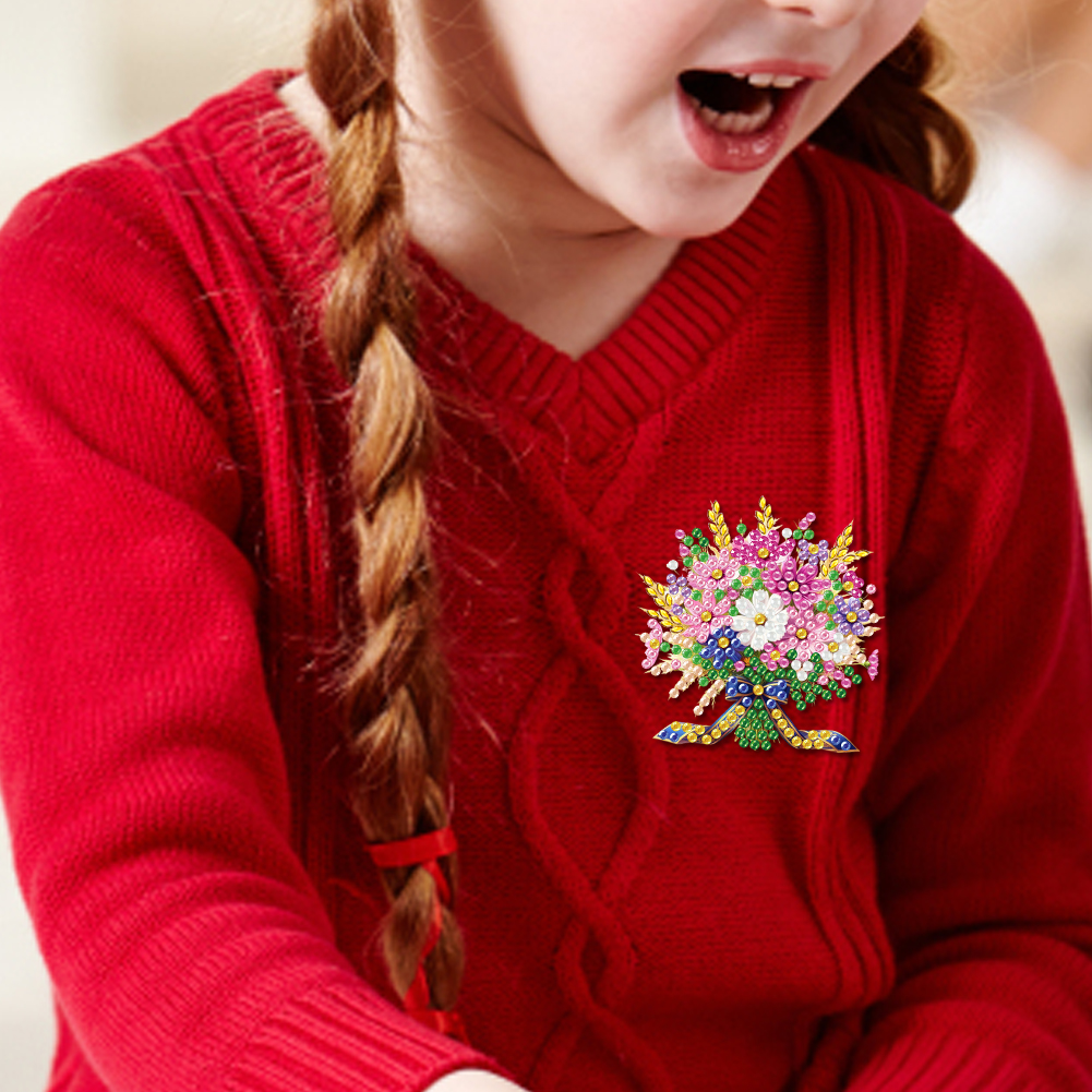 4Pcs DIY Flower Diamond Painting Brooch Diamond Painting Pins Jewelry Kit
