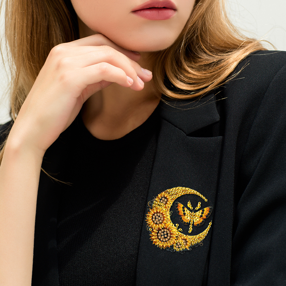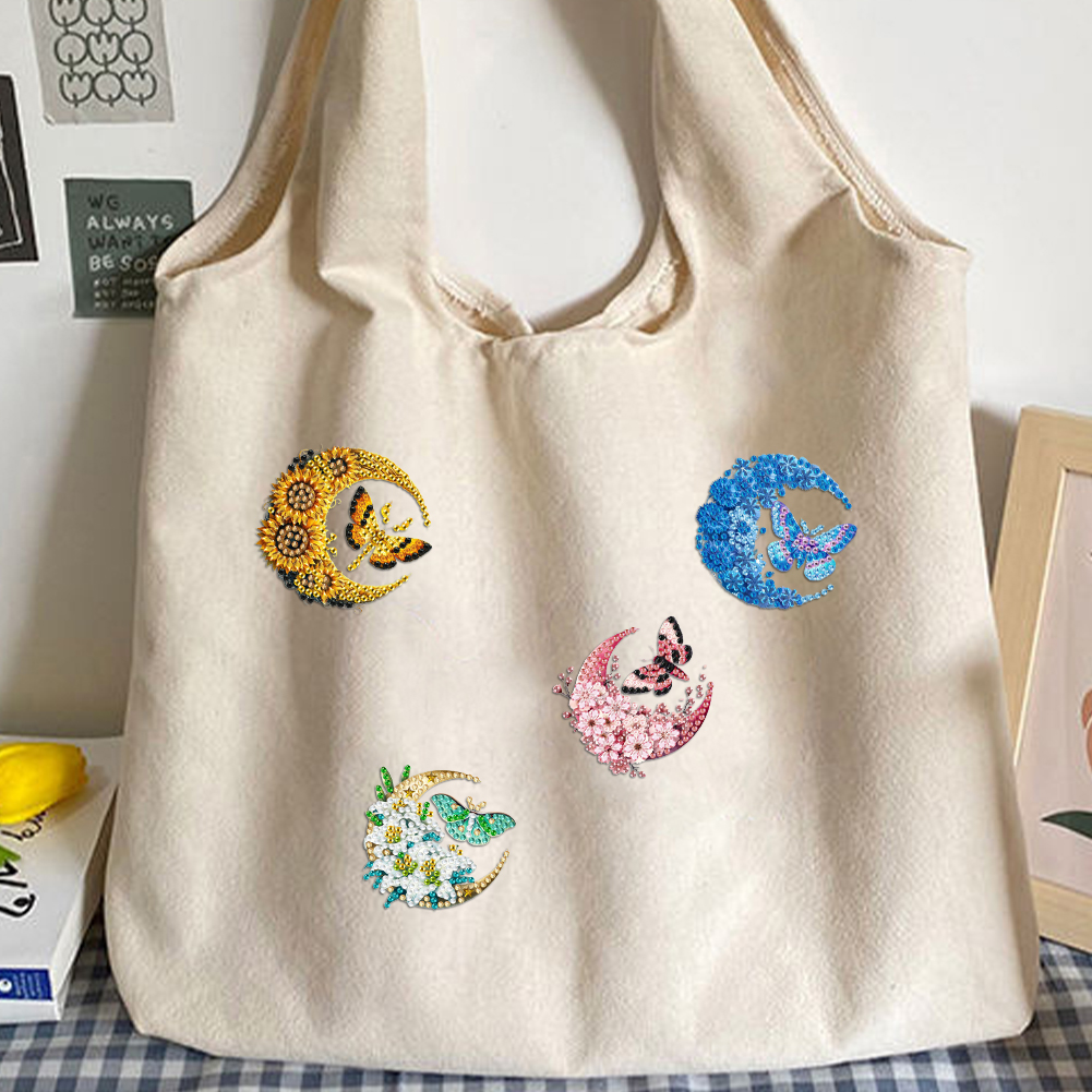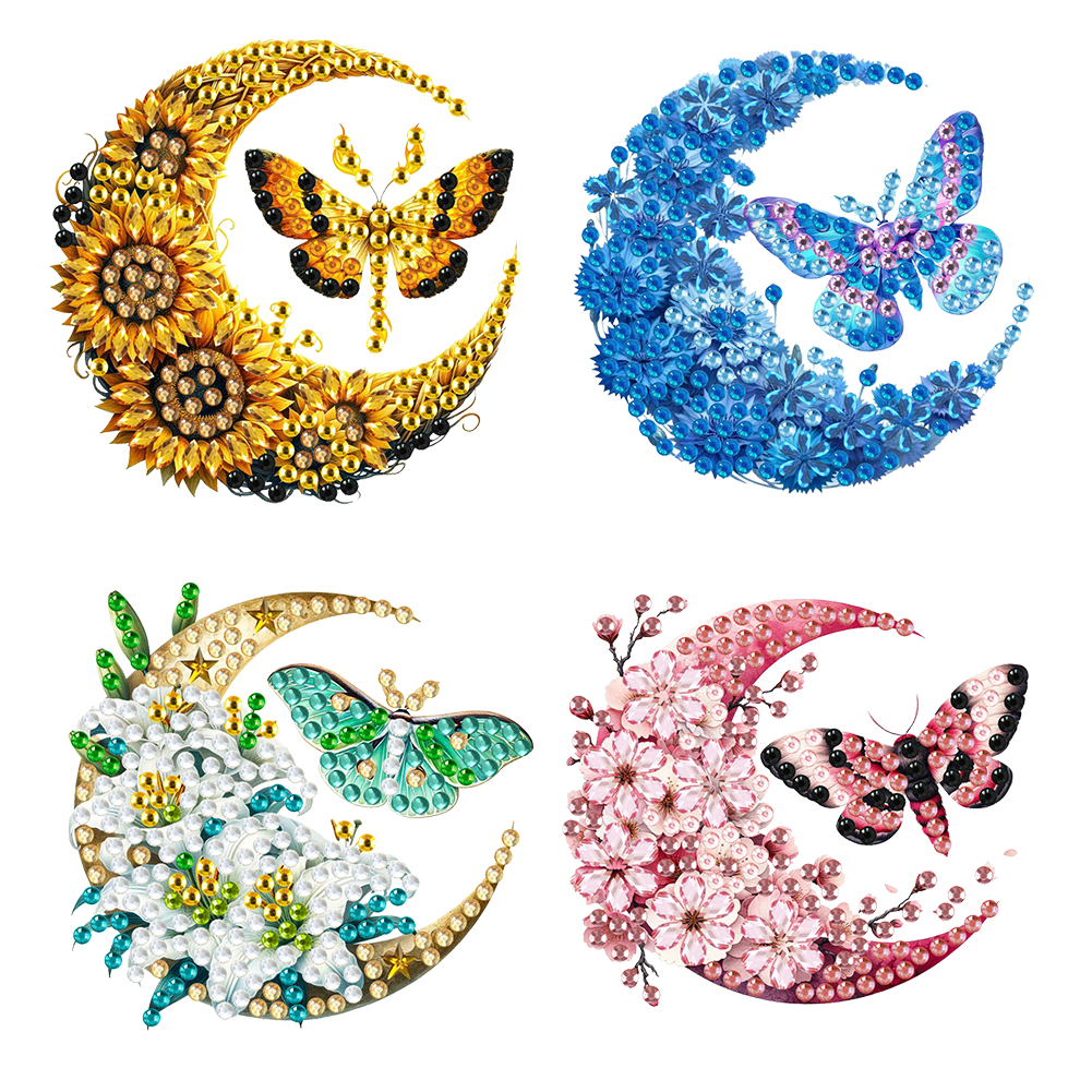 4Pcs DIY Moon Moth Diamond Painting Brooch DIY Diamond Badge Pins for Art Crafts