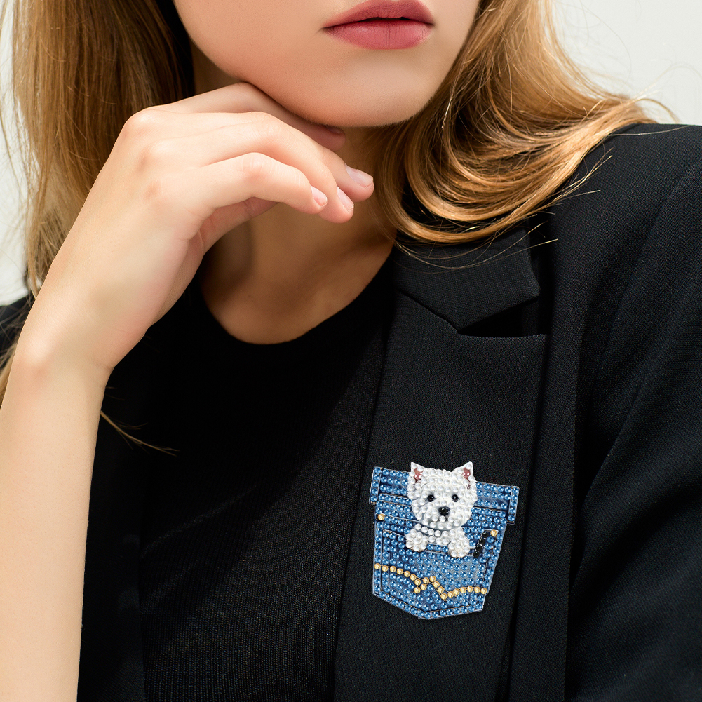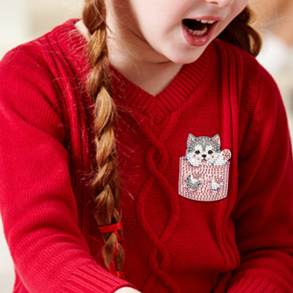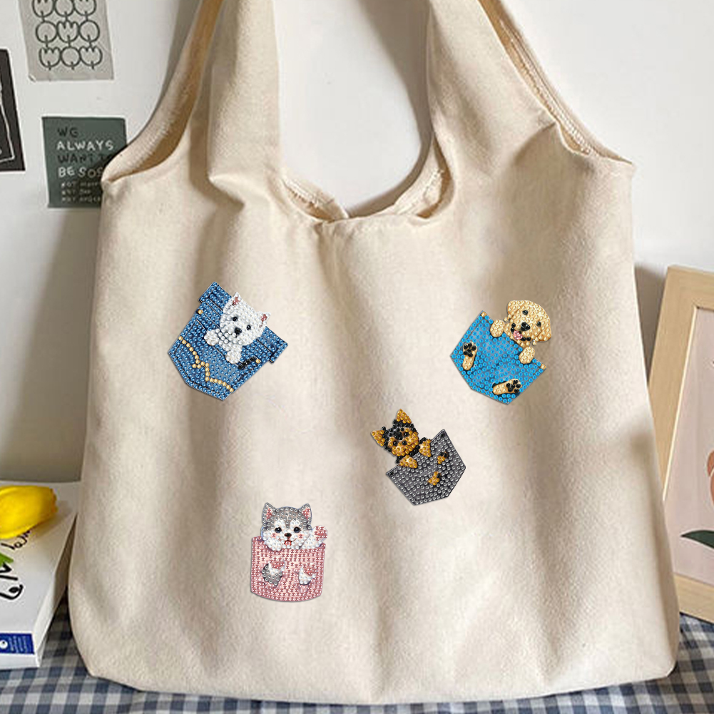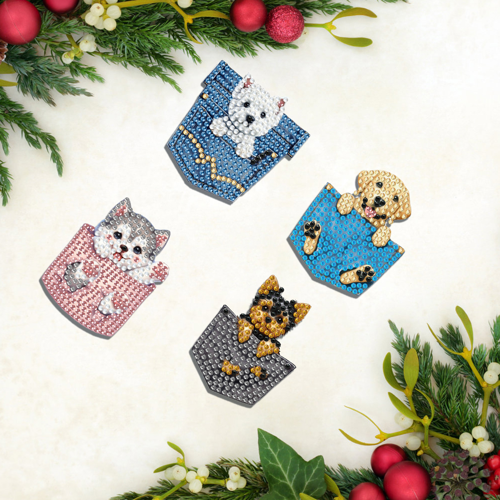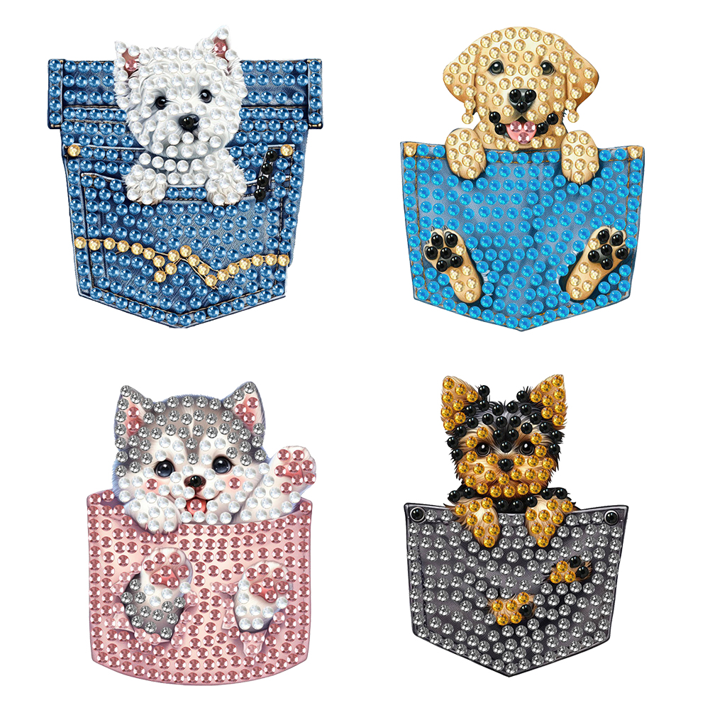 4Pcs DIY Pocket Dog Diamond Painting Brooch DIY Diamond Badge Pins for Art Crafts
