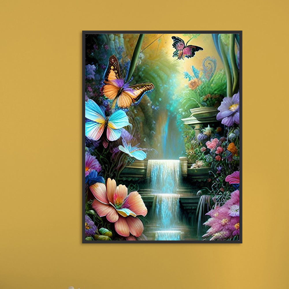 Diamond Painting - Full Round Drill - Flower Butterfly Waterfall(30*40cm)