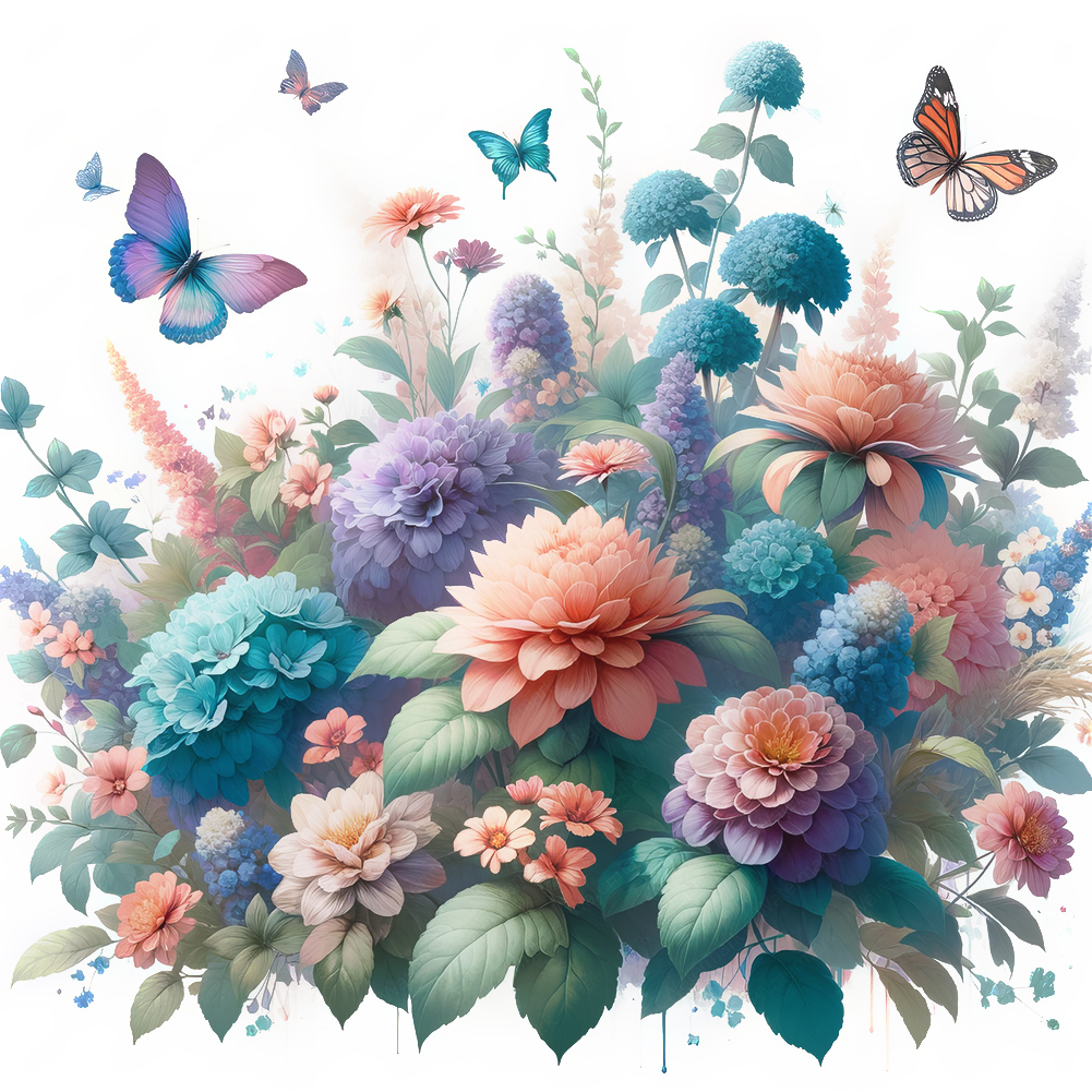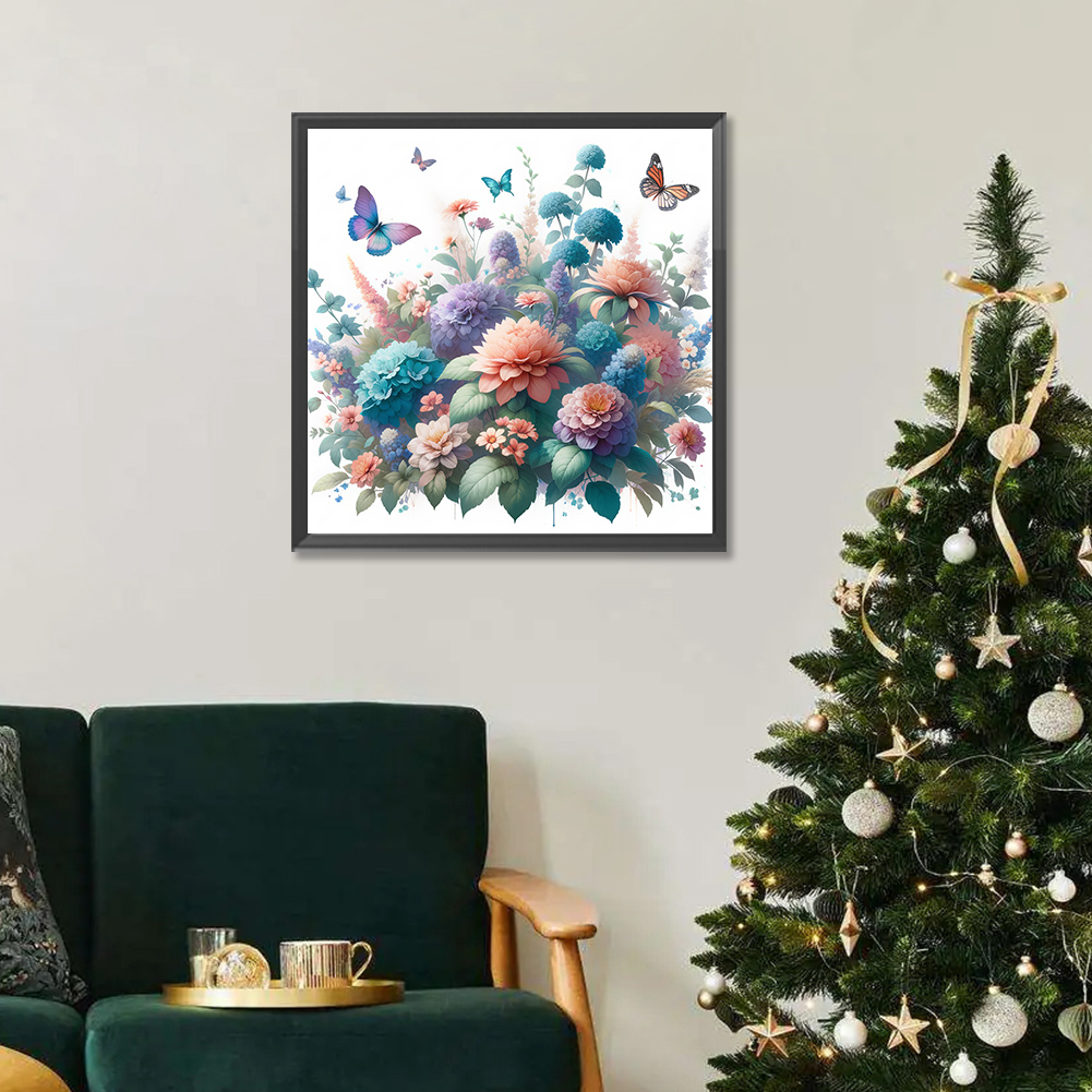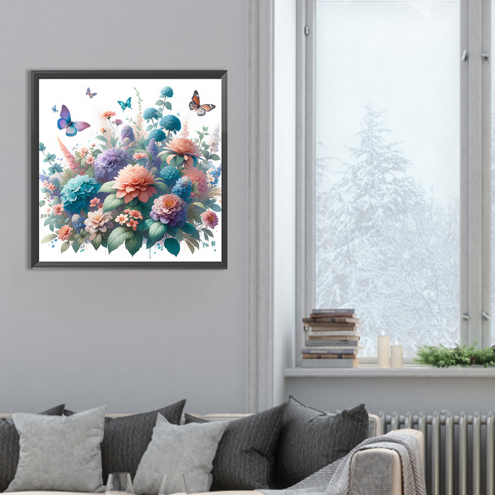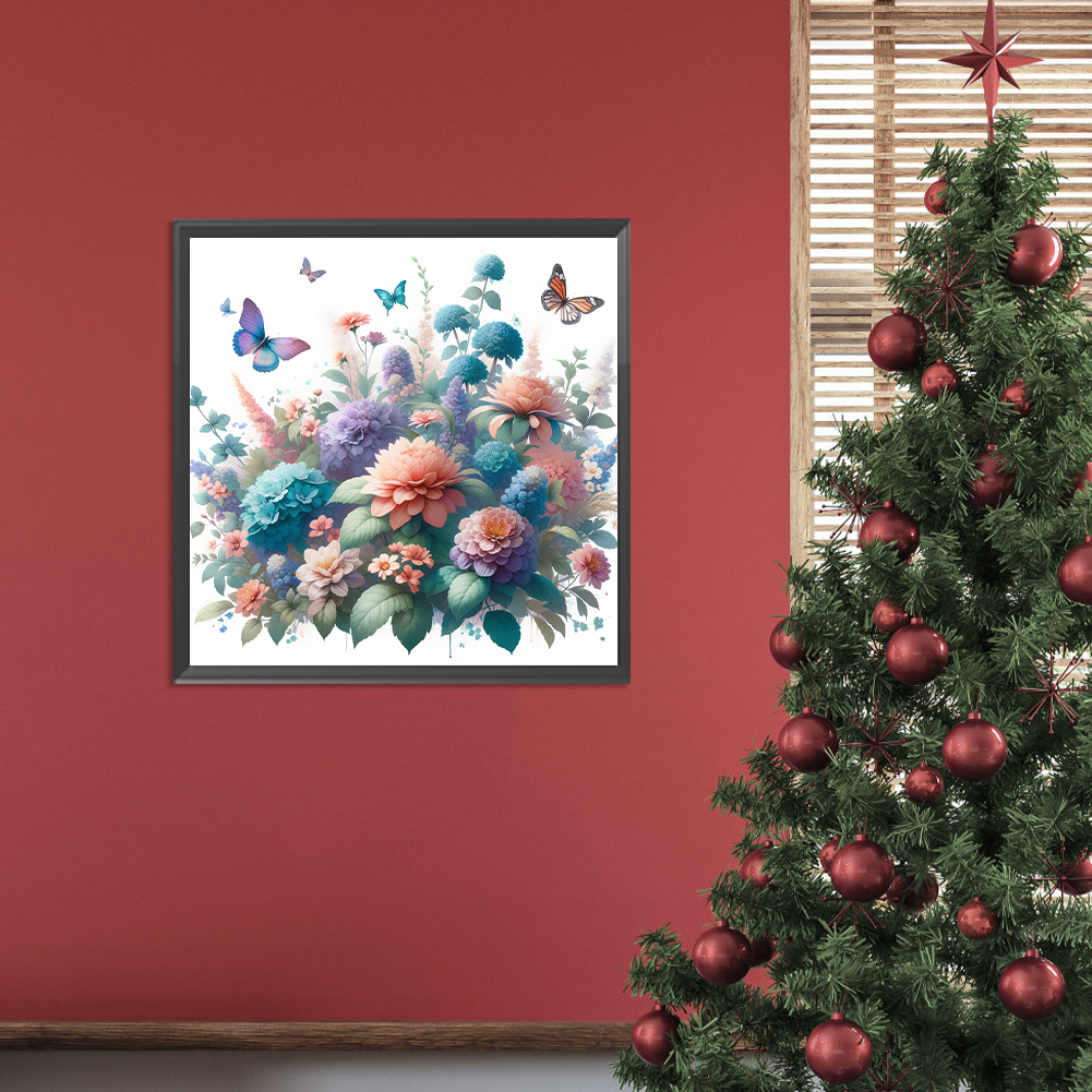 Diamond Painting - Full Round Drill - Flower Butterfly(Canvas|30*30cm)