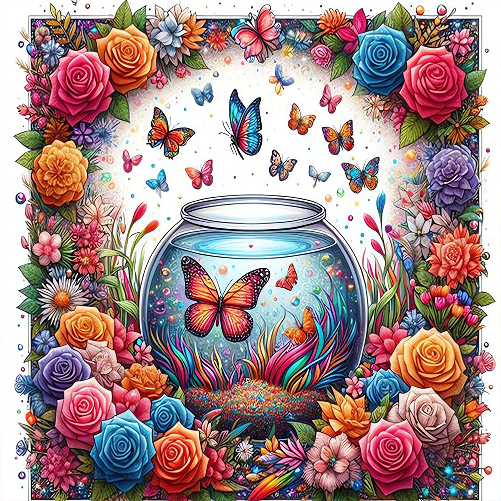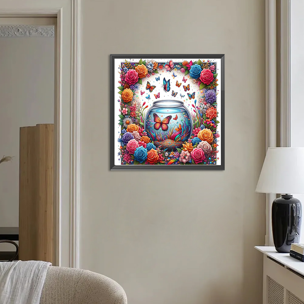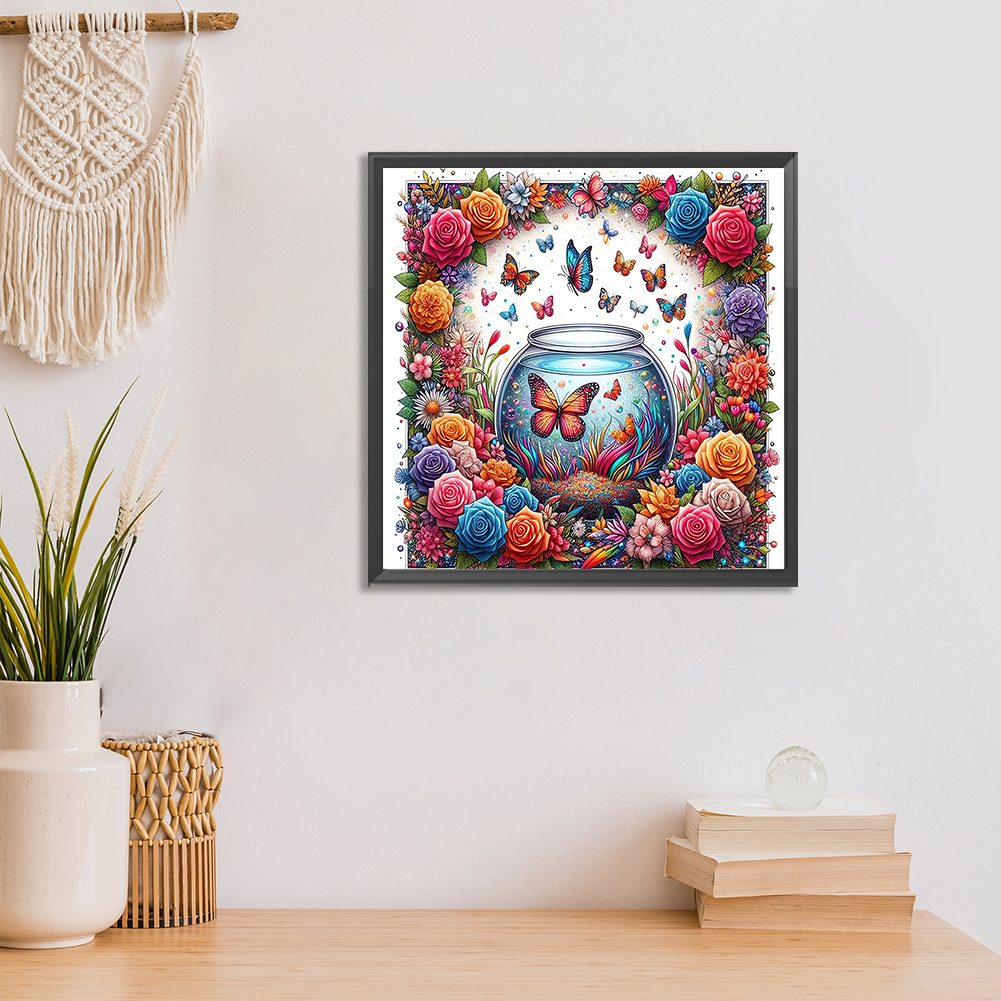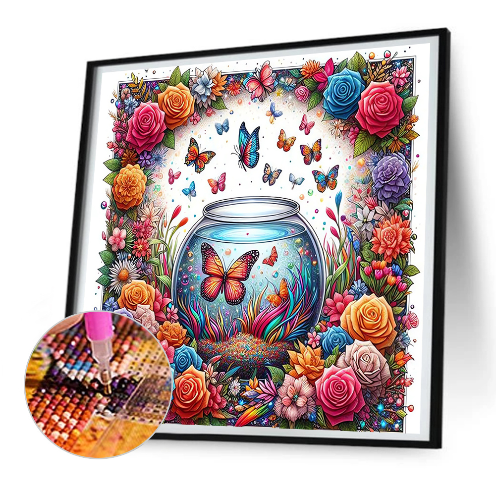 Diamond Painting - Full Round Drill - Flower Butterfly(Canvas|30*30cm)