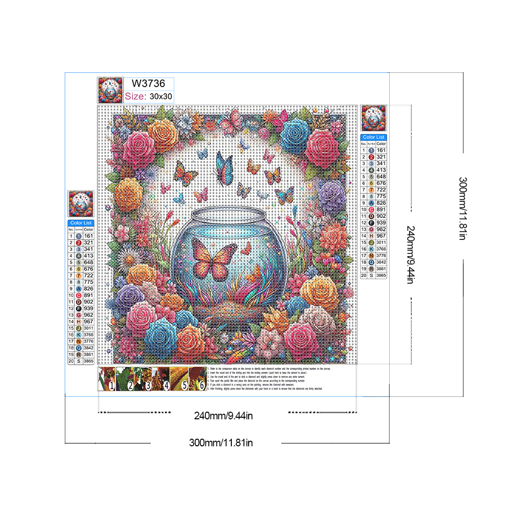 Canvas size: Approx.30x30cm/11.81x15.75in (1cm=0.39in)