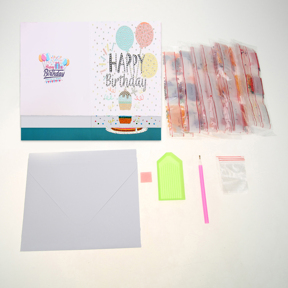 12pcs Diamond Painting Greeting Card - Rhinestone - Embroidery for Birthday【With White Envelope】