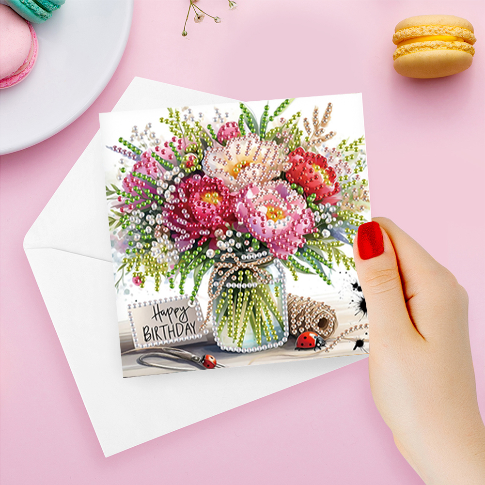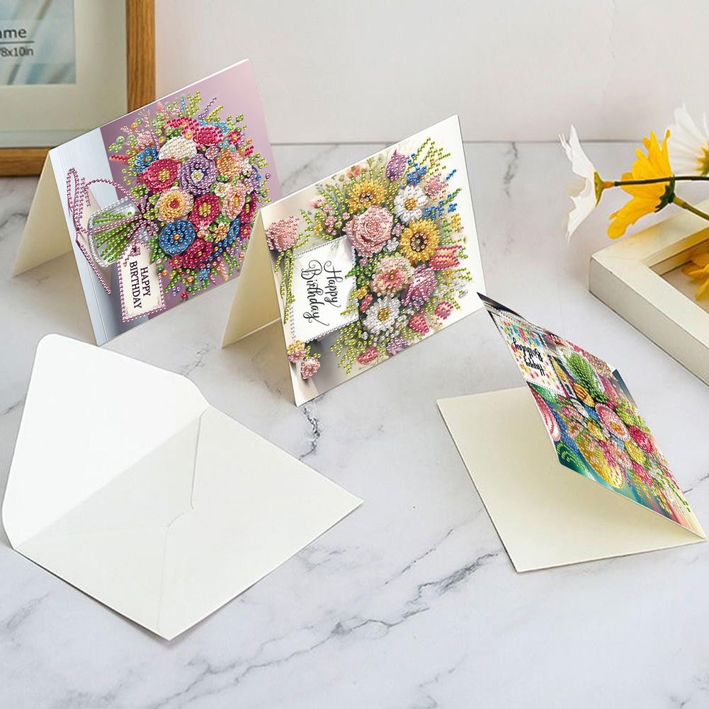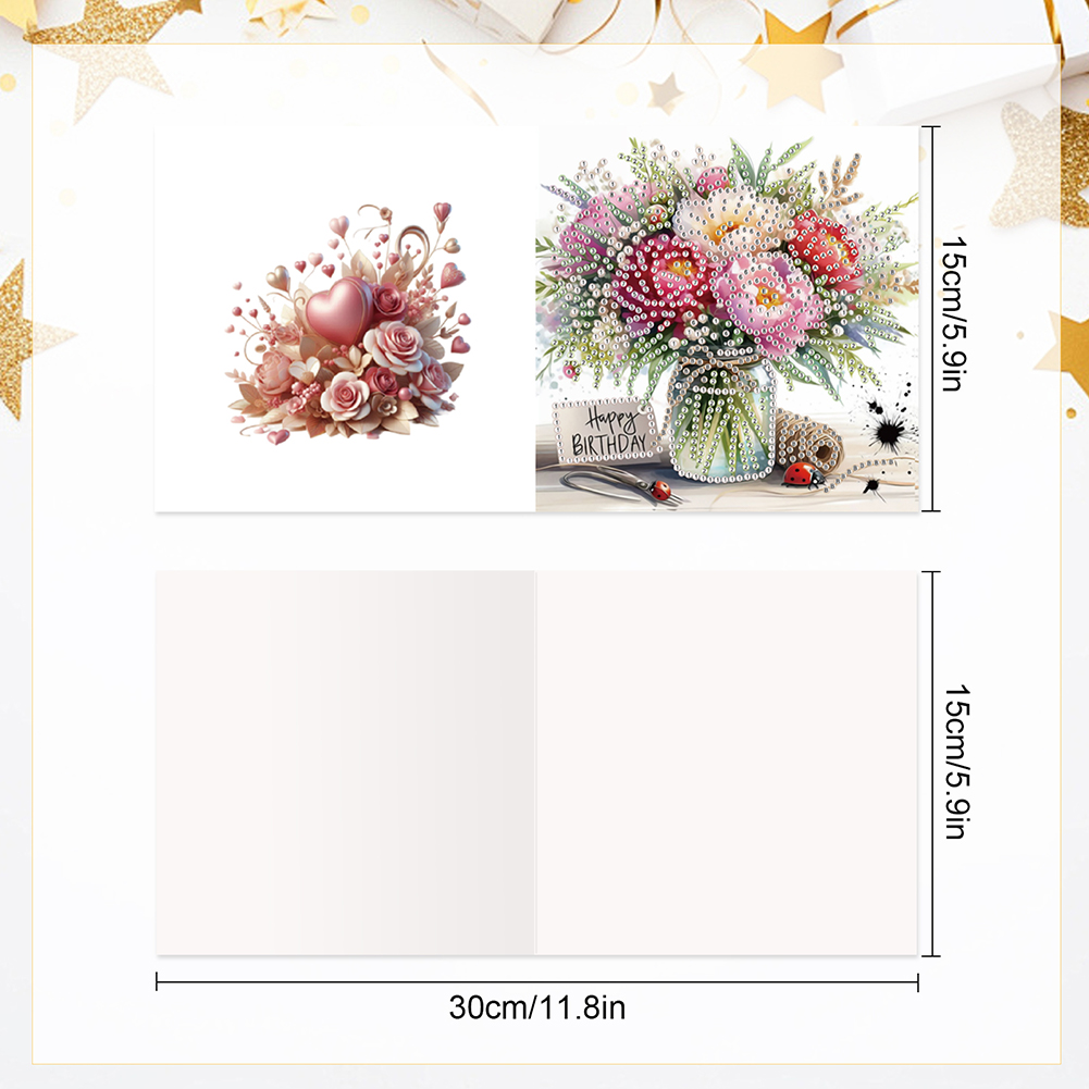 [Upgrade-Laser Card]6Pcs Birthday Bouquet DIY Diamond Painting Card Diamond Drawing Card for Friends