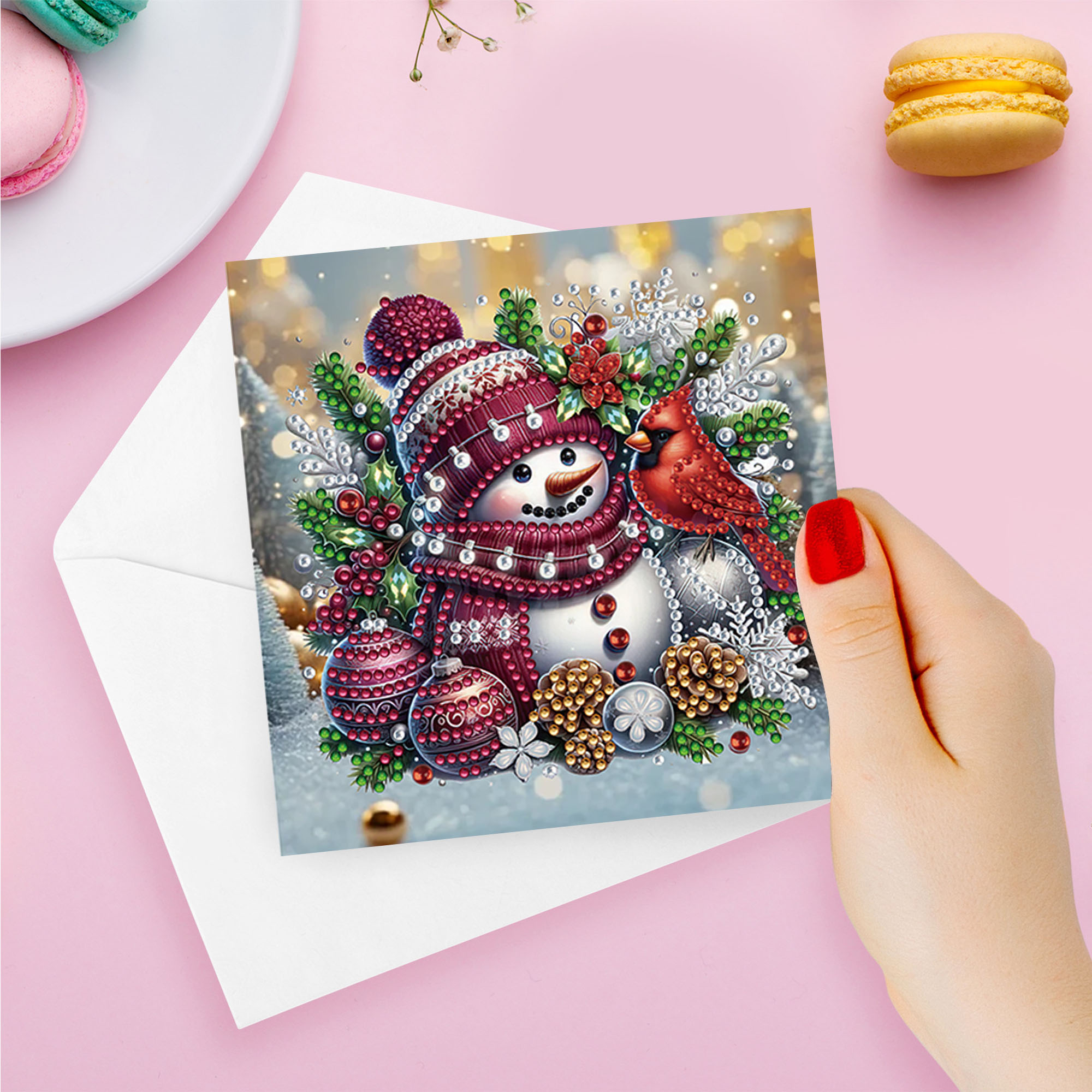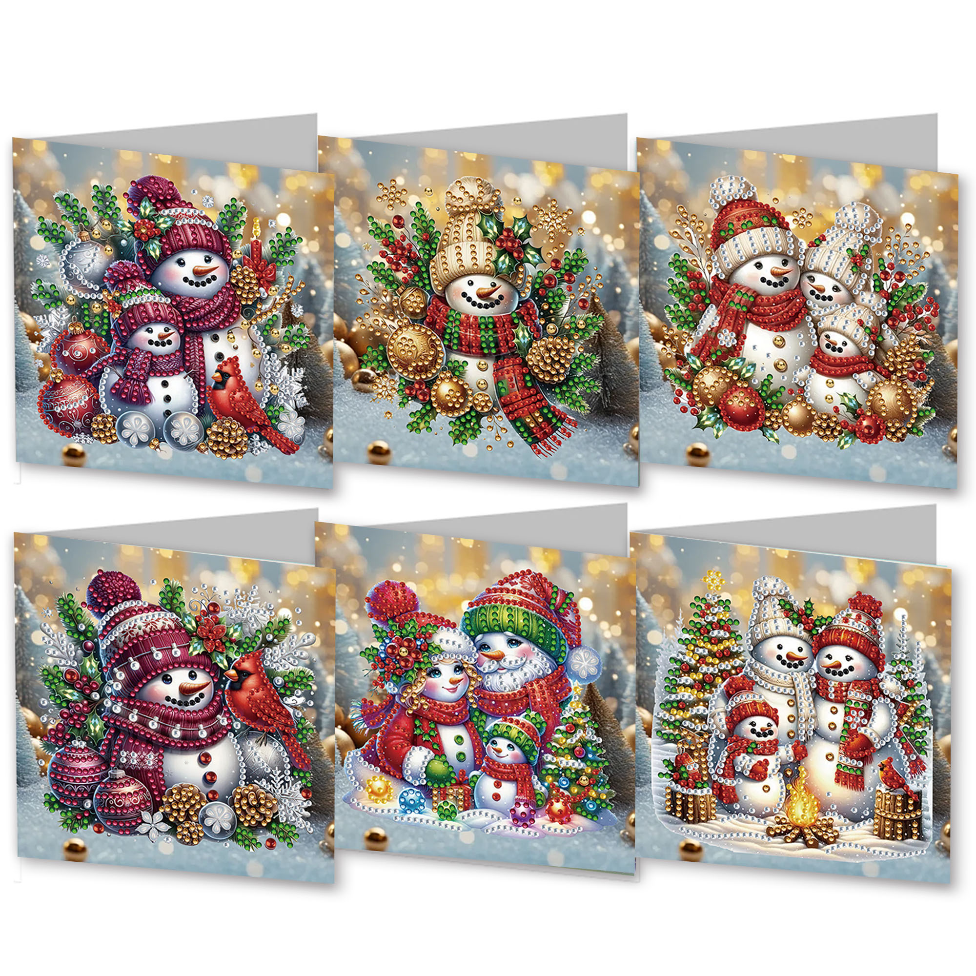 6pcs DIY Christmas Snowman DIY Diamond Painting Greeting Card for Friends Family Gift【With White Envelope】