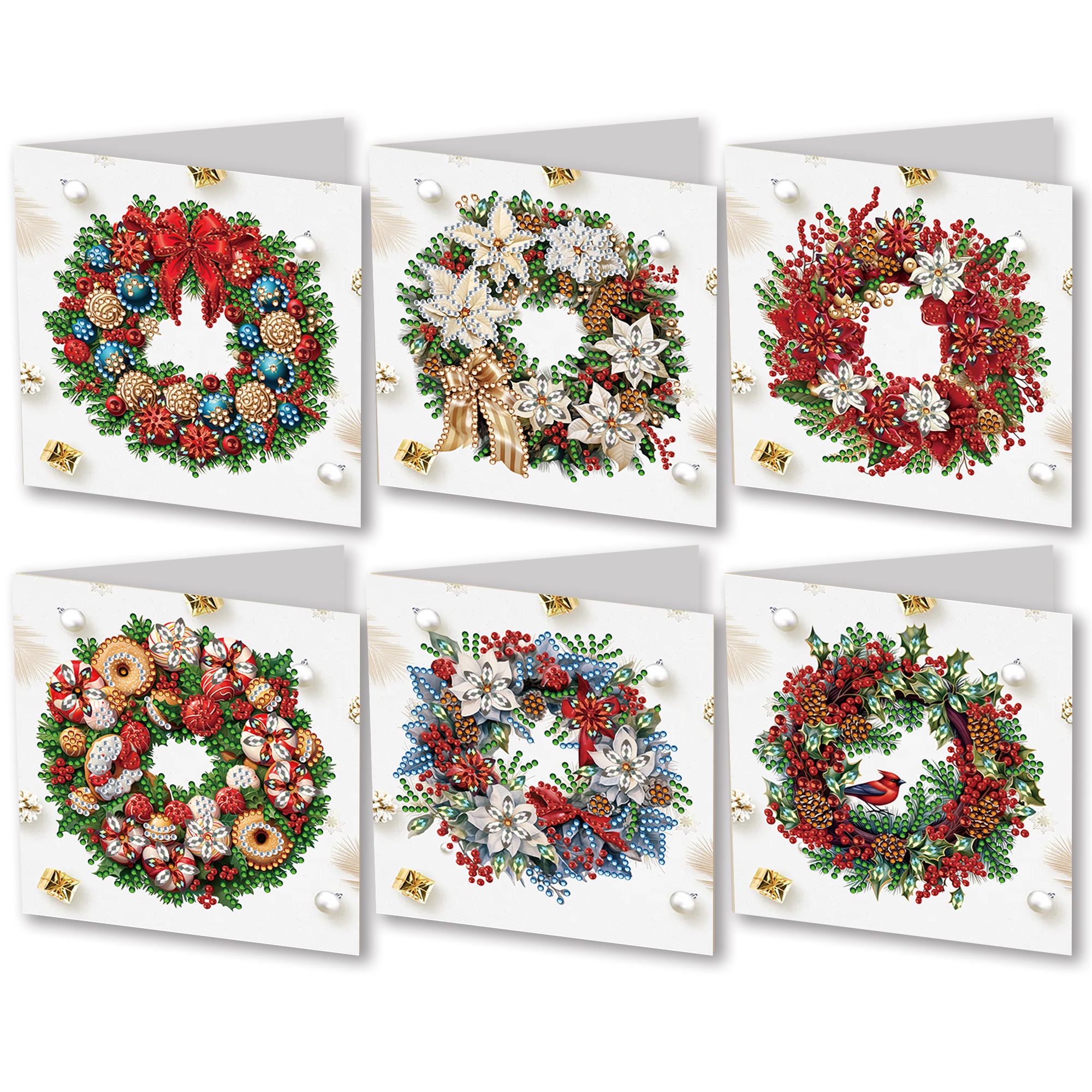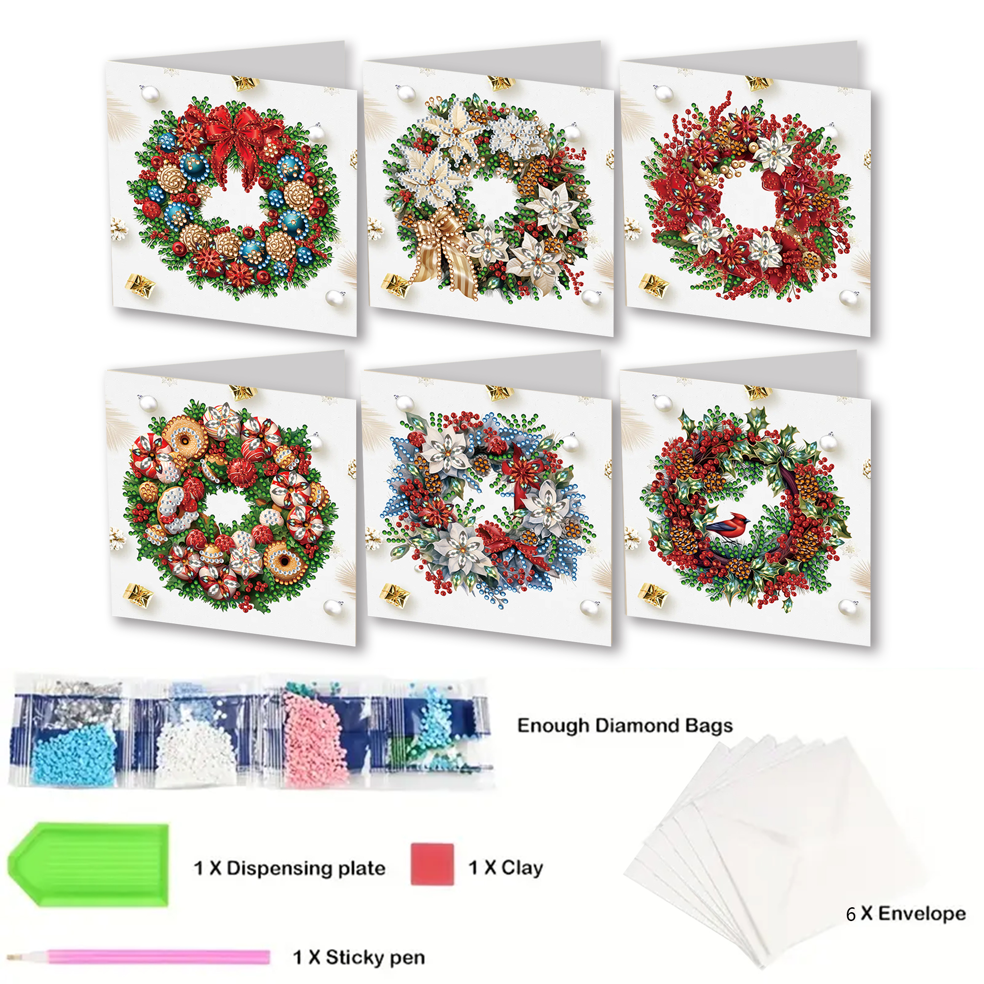 6Pcs Christmas Wreath DIY Diamond Painting Card for Friends Family Gift