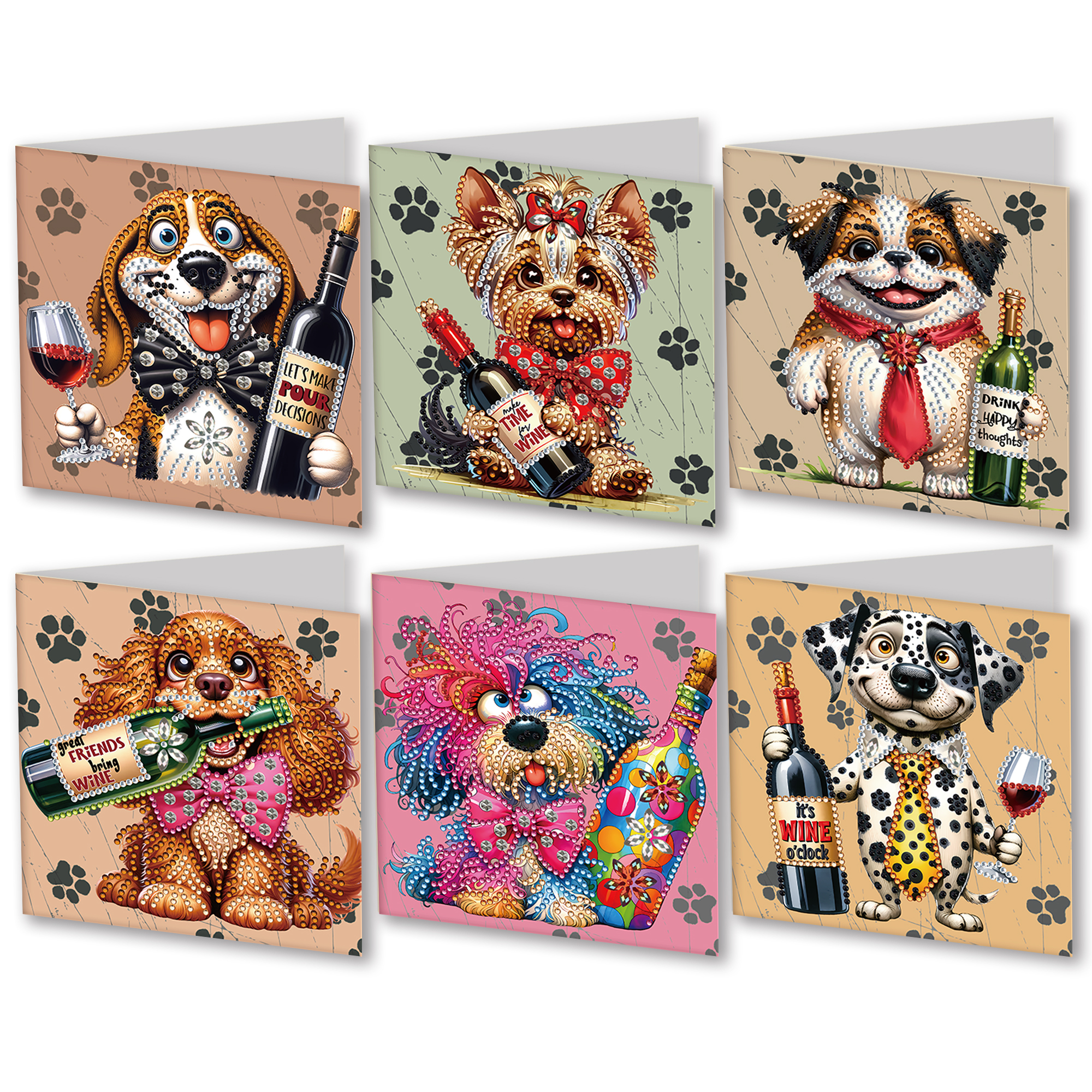 6Pcs Wine Dog DIY Diamond Painting Card for Friends Family Gift