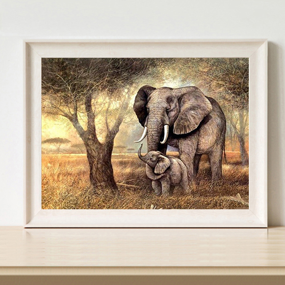 DIY Full Cross Stitch Embroidery Elephant Cotton Thread Handcraft Painting 11CT Stamped Printed Needlework Home Wall Decoration Ornament