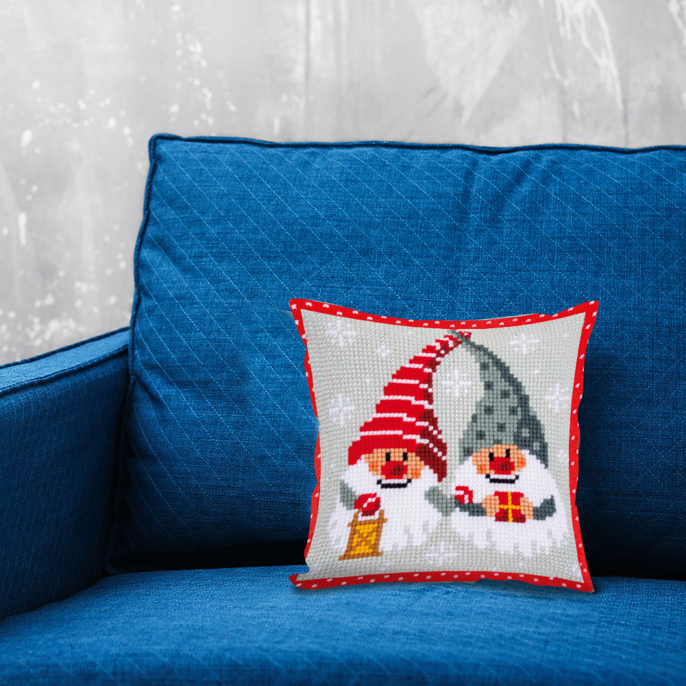 Christmas Gnome Pillow Case Embroidery DIY Cross Stitch Kits Stamped Canvas 11CT Needlework Sets Home Decor Gifts