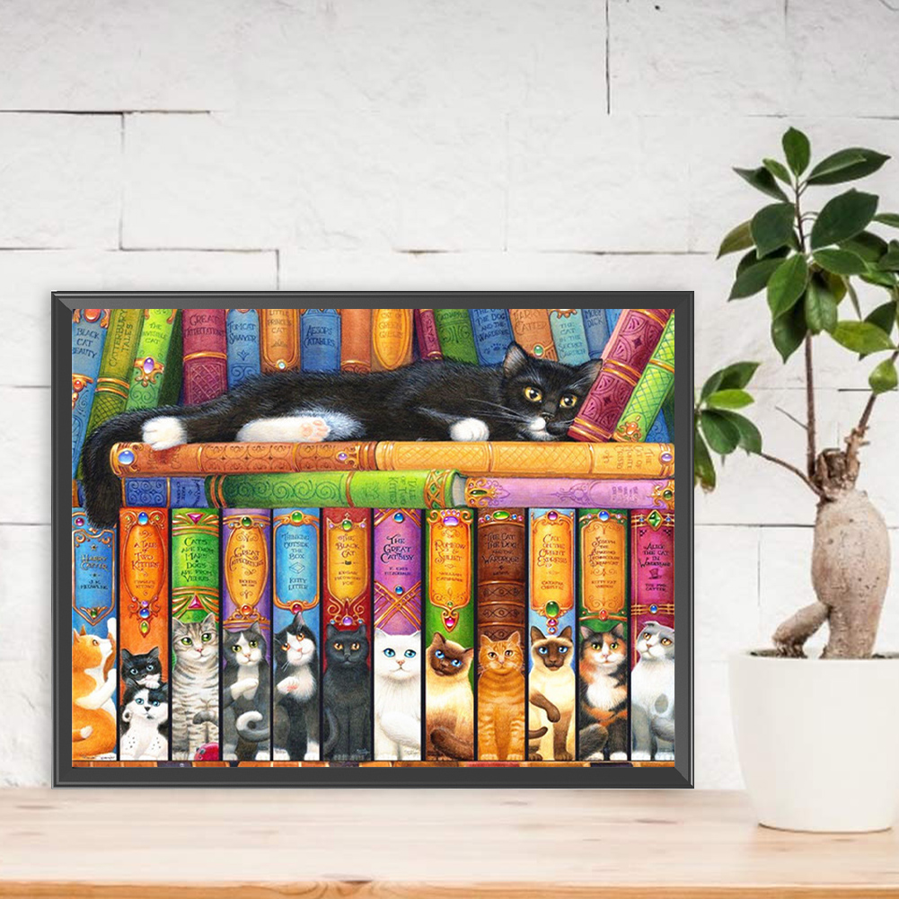 Diamond Painting - Full Round Drill - Book Cat(Canvas|40*30cm)