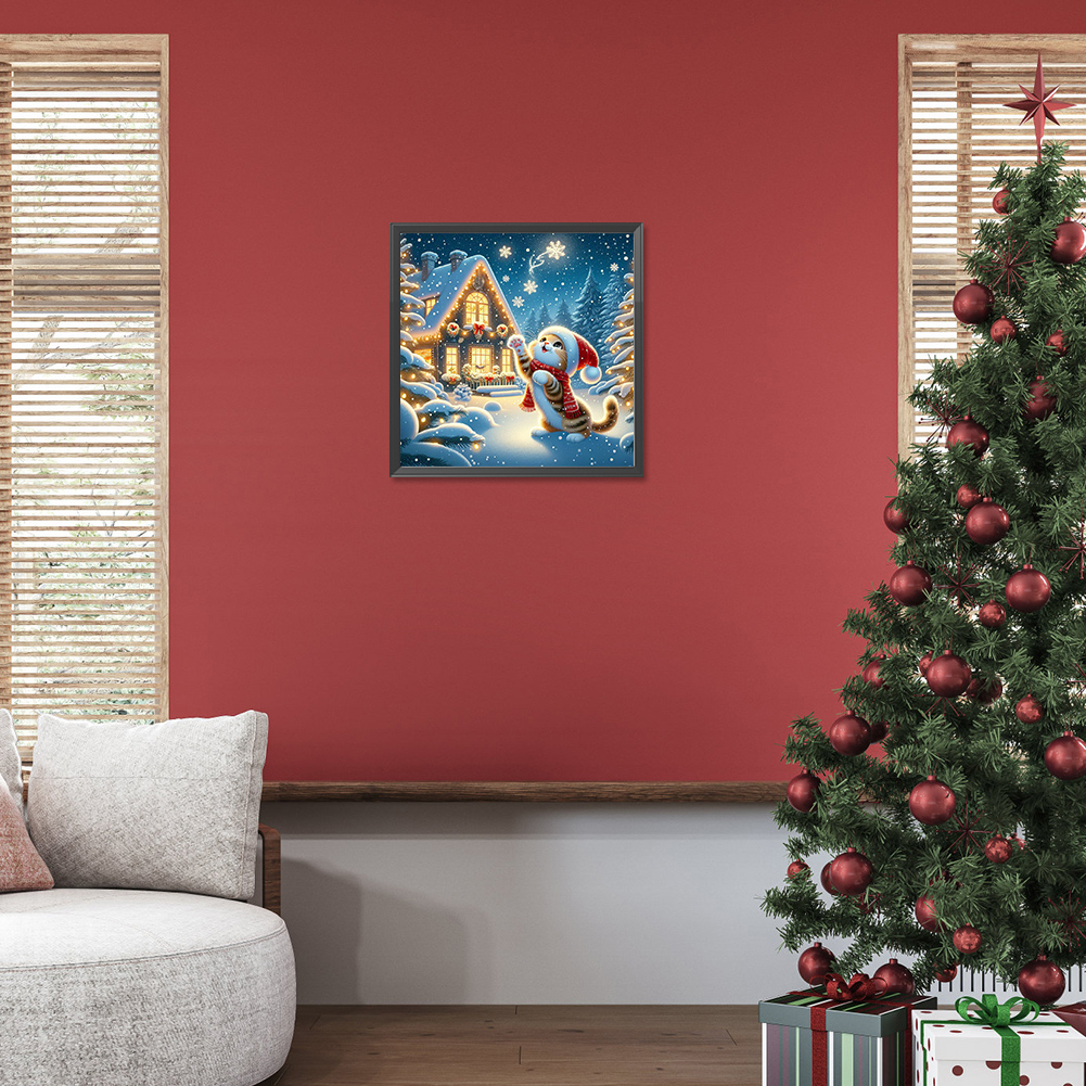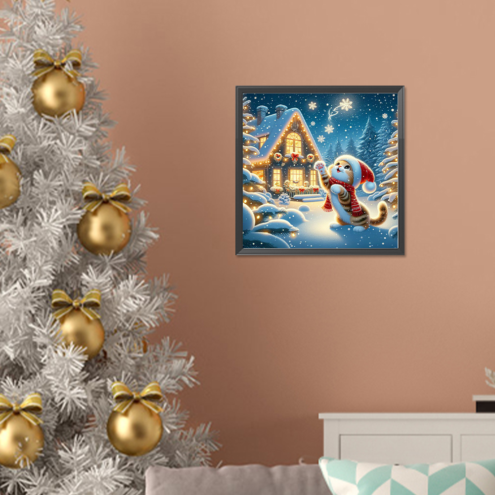 Diamond Painting - Full Round Drill - Christmas Cat(Canvas|30*30cm)