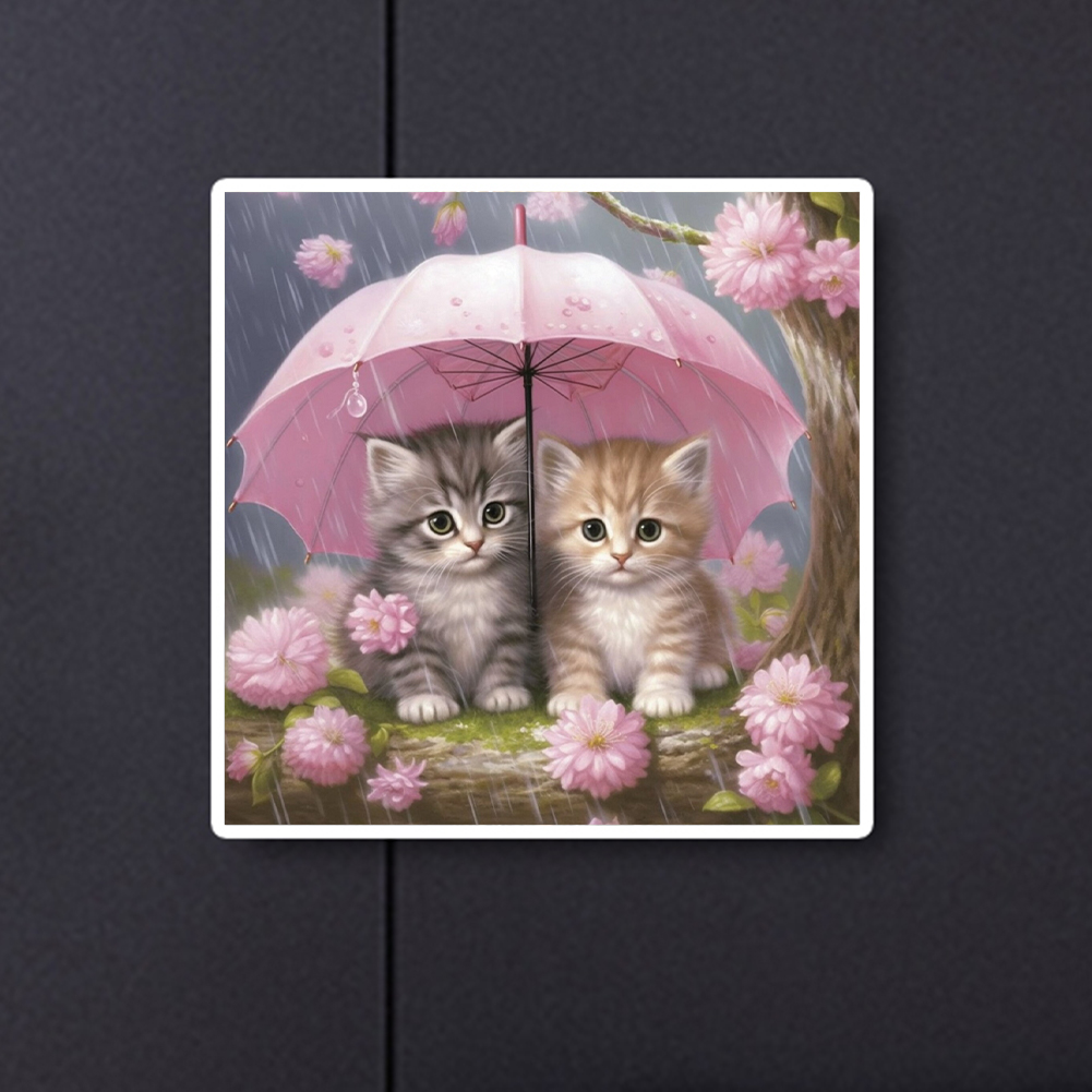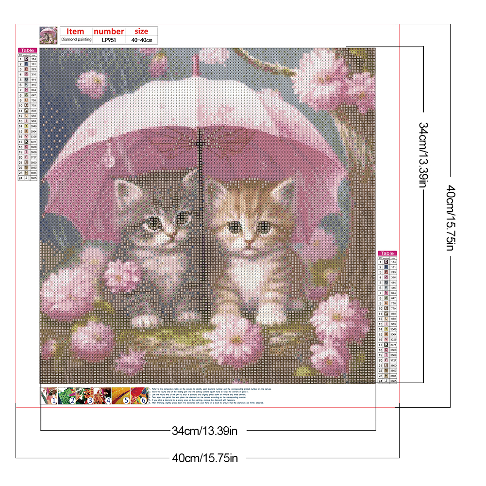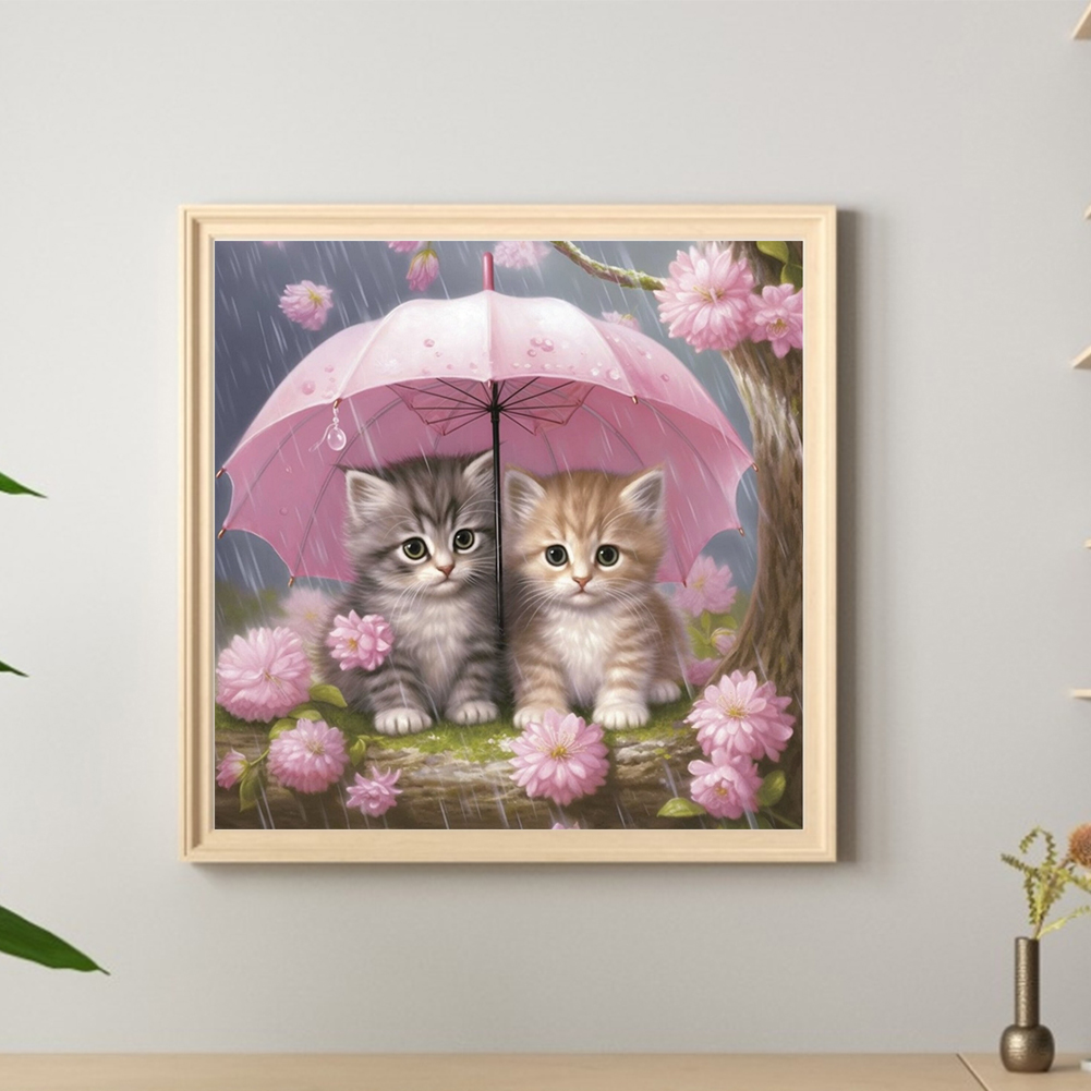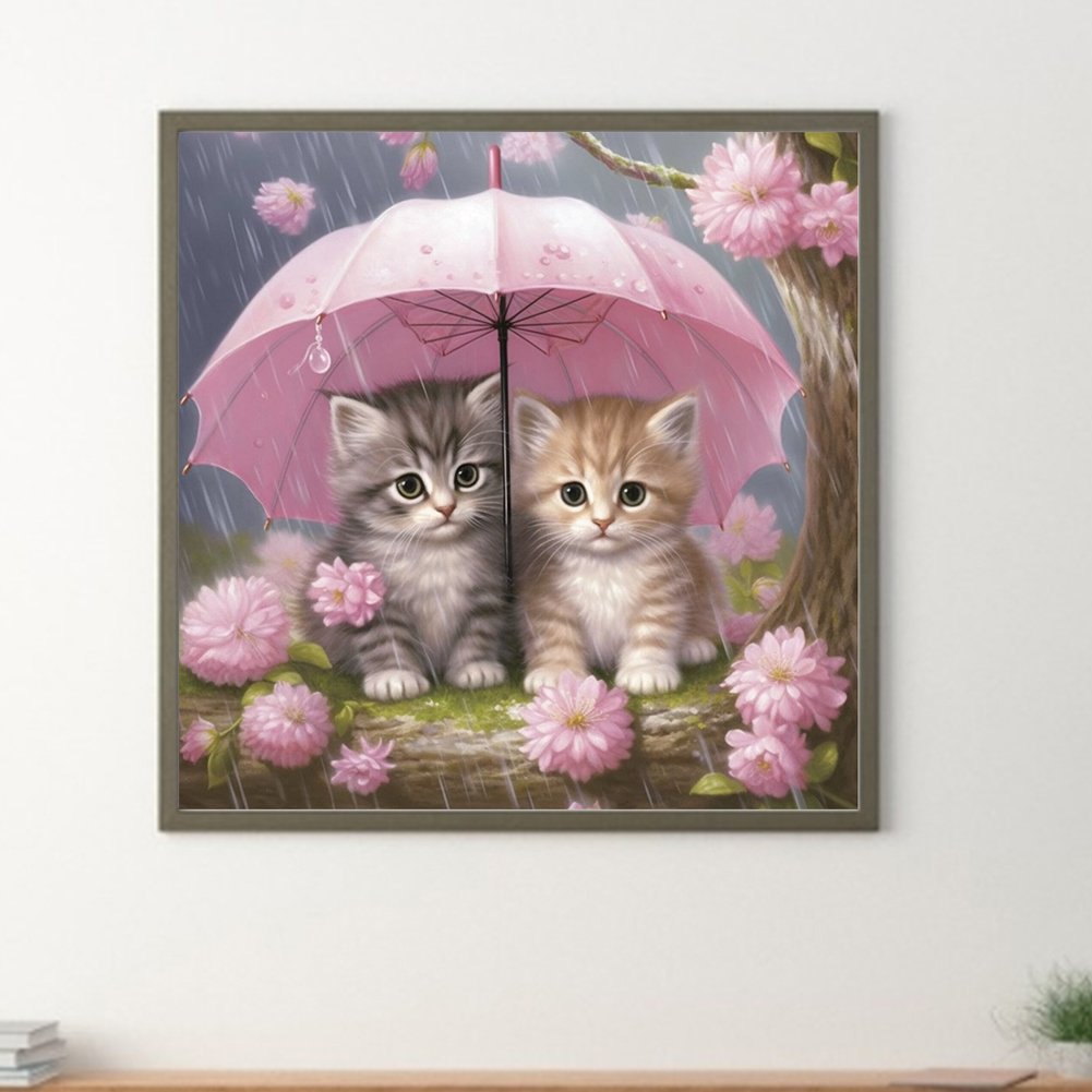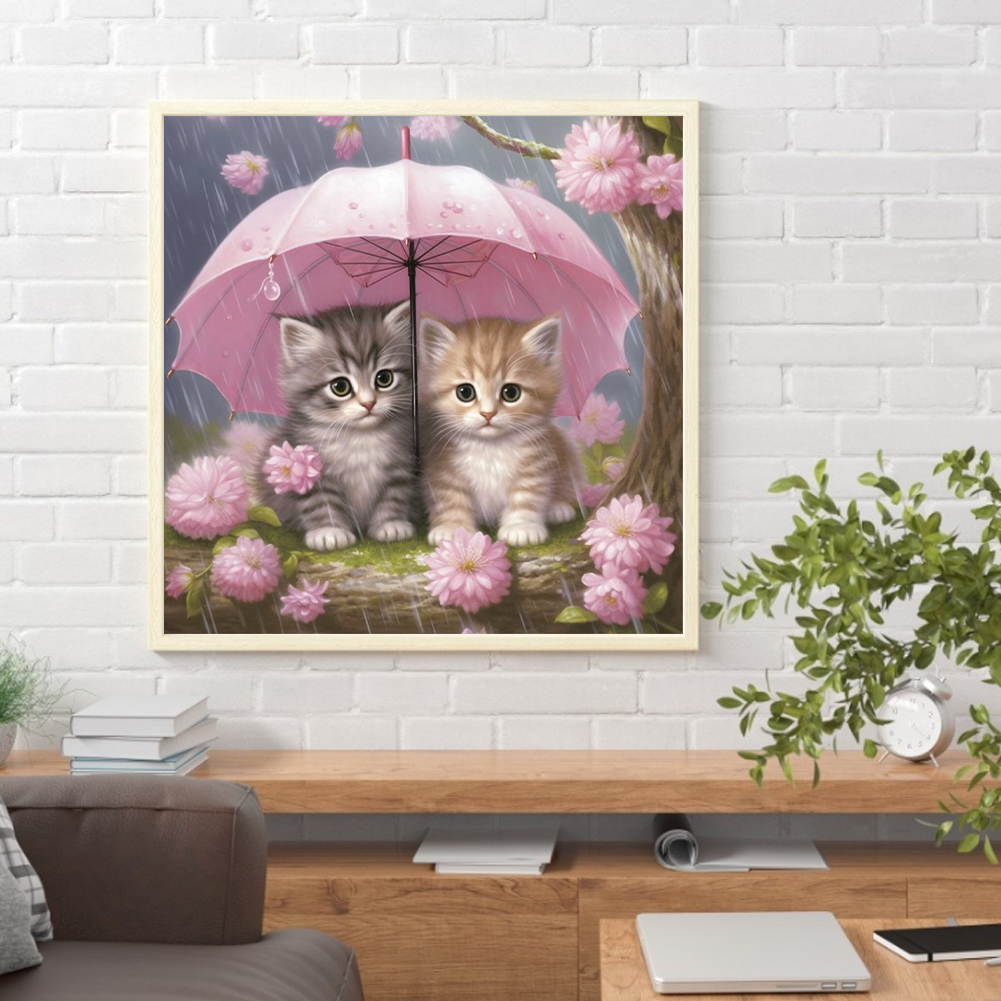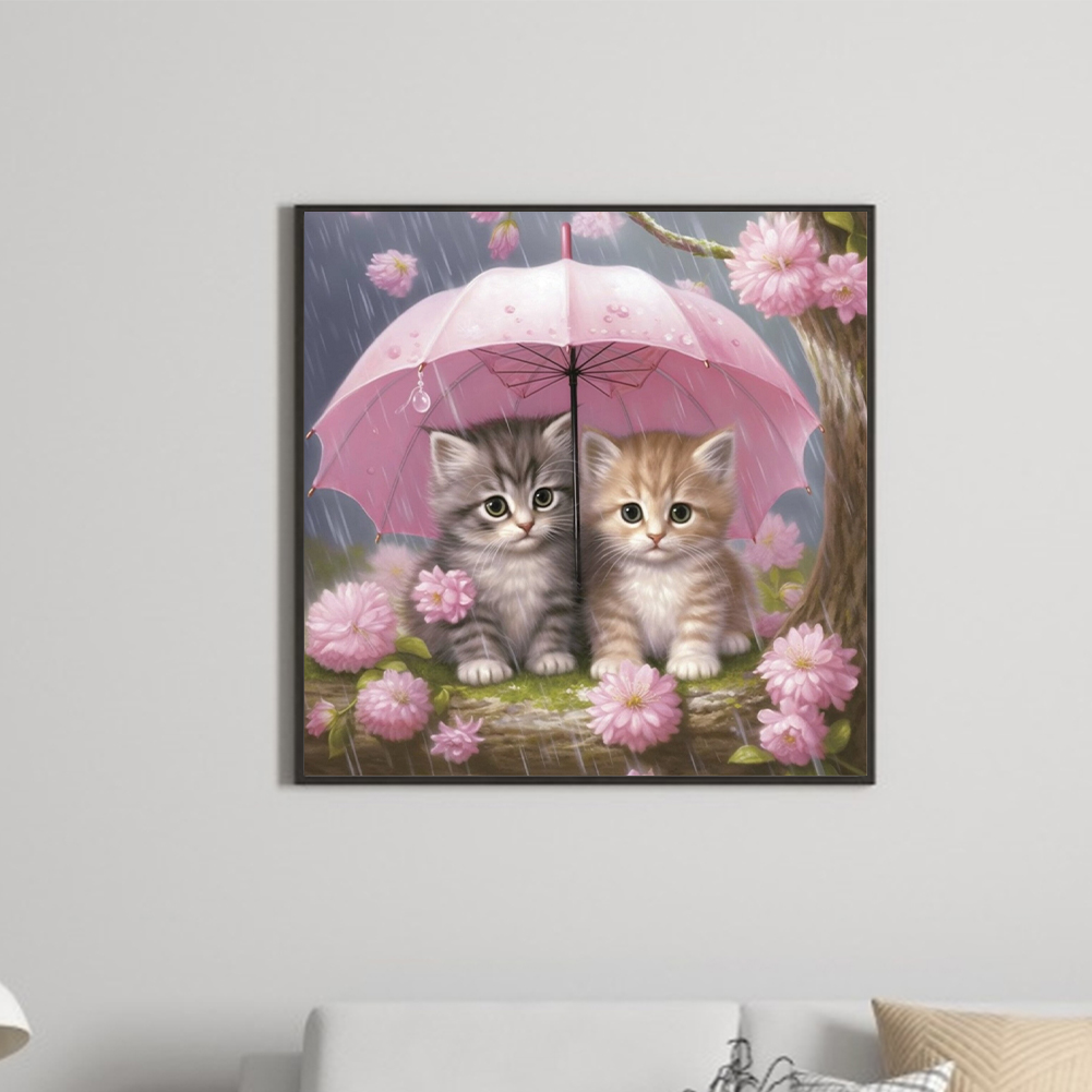 Diamond Painting - Full Round Drill - Umbrella Cat(Canvas|40*40cm)