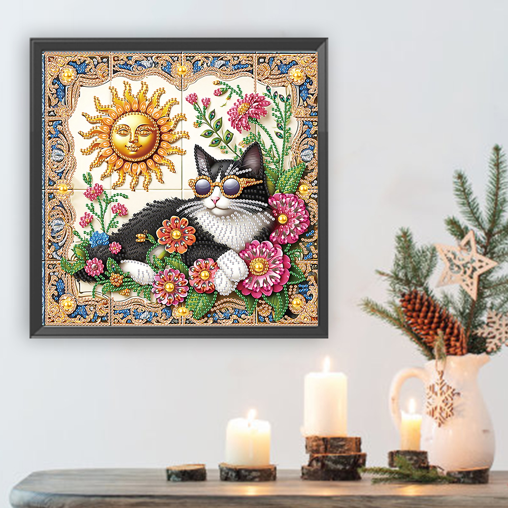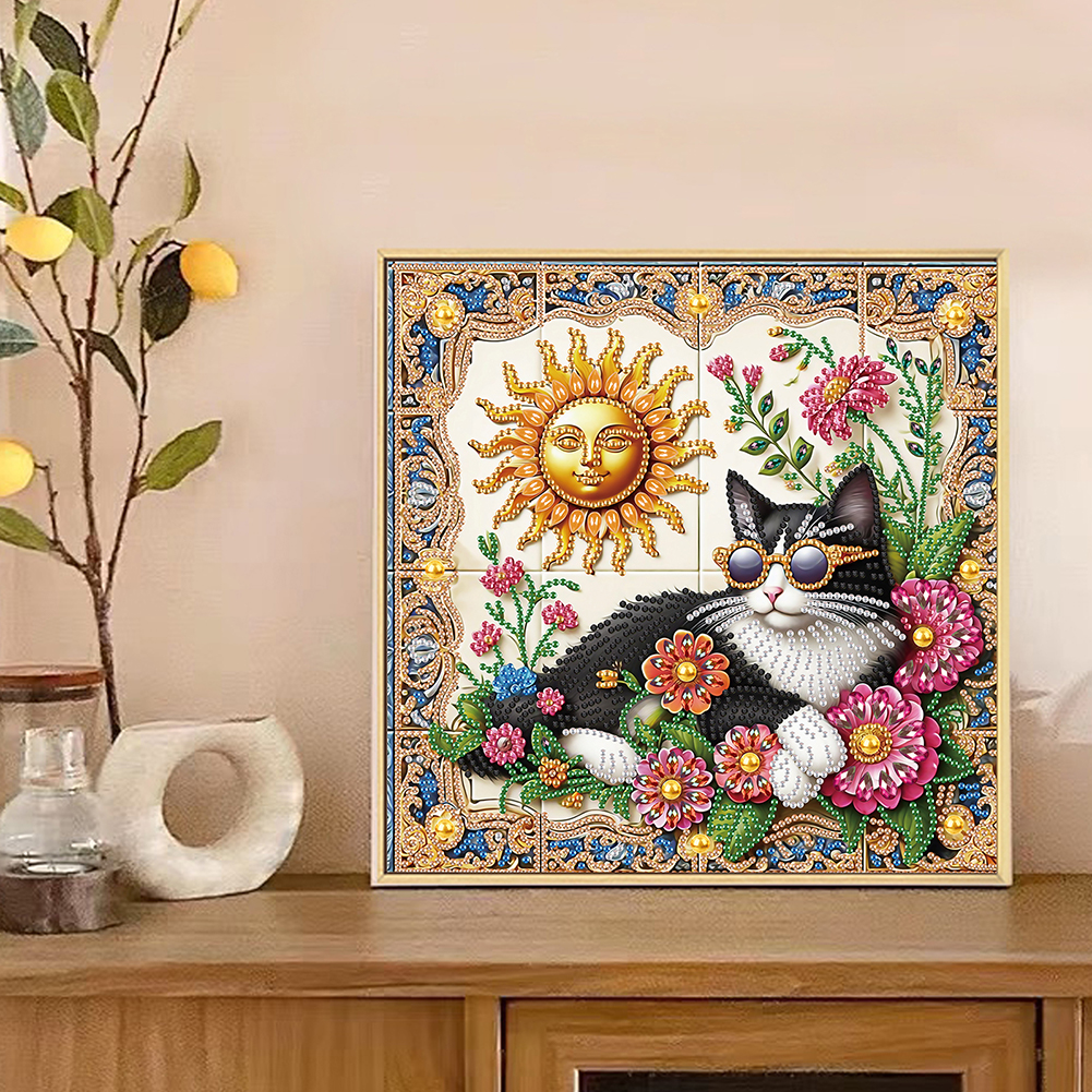 Diamond Painting - Partial Special Shaped Drill - Sun Cat(Canvas|30*30cm)