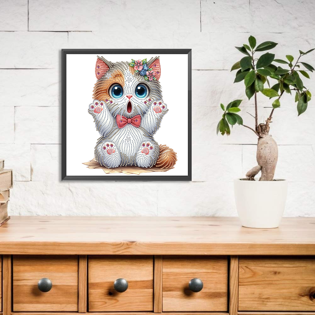 Diamond Painting - Partial Special Shaped Drill - Surprised Kitty(Canvas|30*30cm)