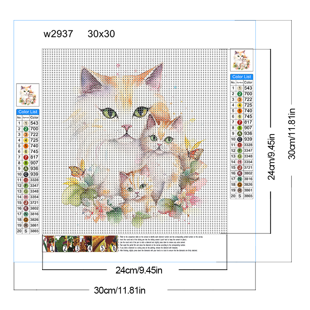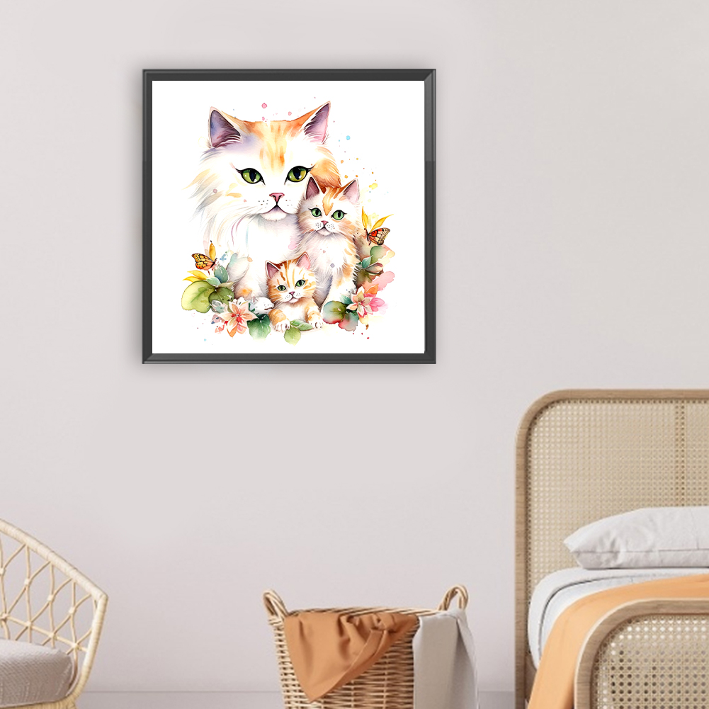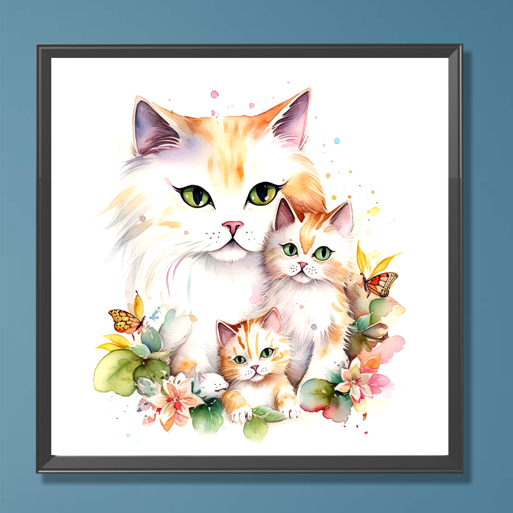 Full Round Diamond Painting 30*30cm - Cat Family