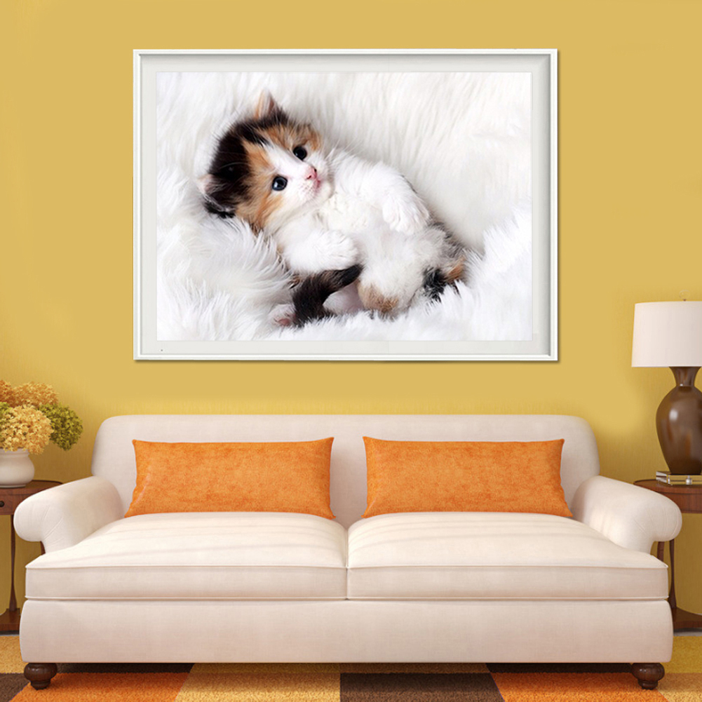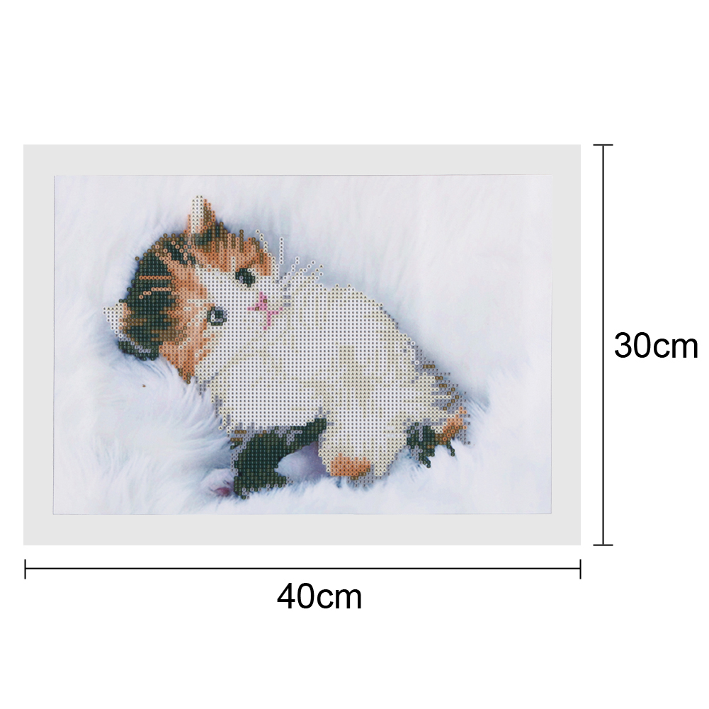 1 X White Adorable Cat Diamond Painting(with rhinestones need to be pasted)