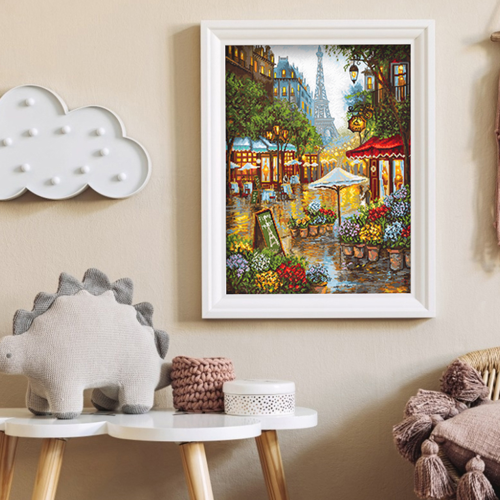 Full Embroidery Eco-cotton Thread 11CT Stamped Print DIY Paris Scenery Handmade Cross Stitch Artwork Canvas Kit Needlework Home Decor Ornaments Craft