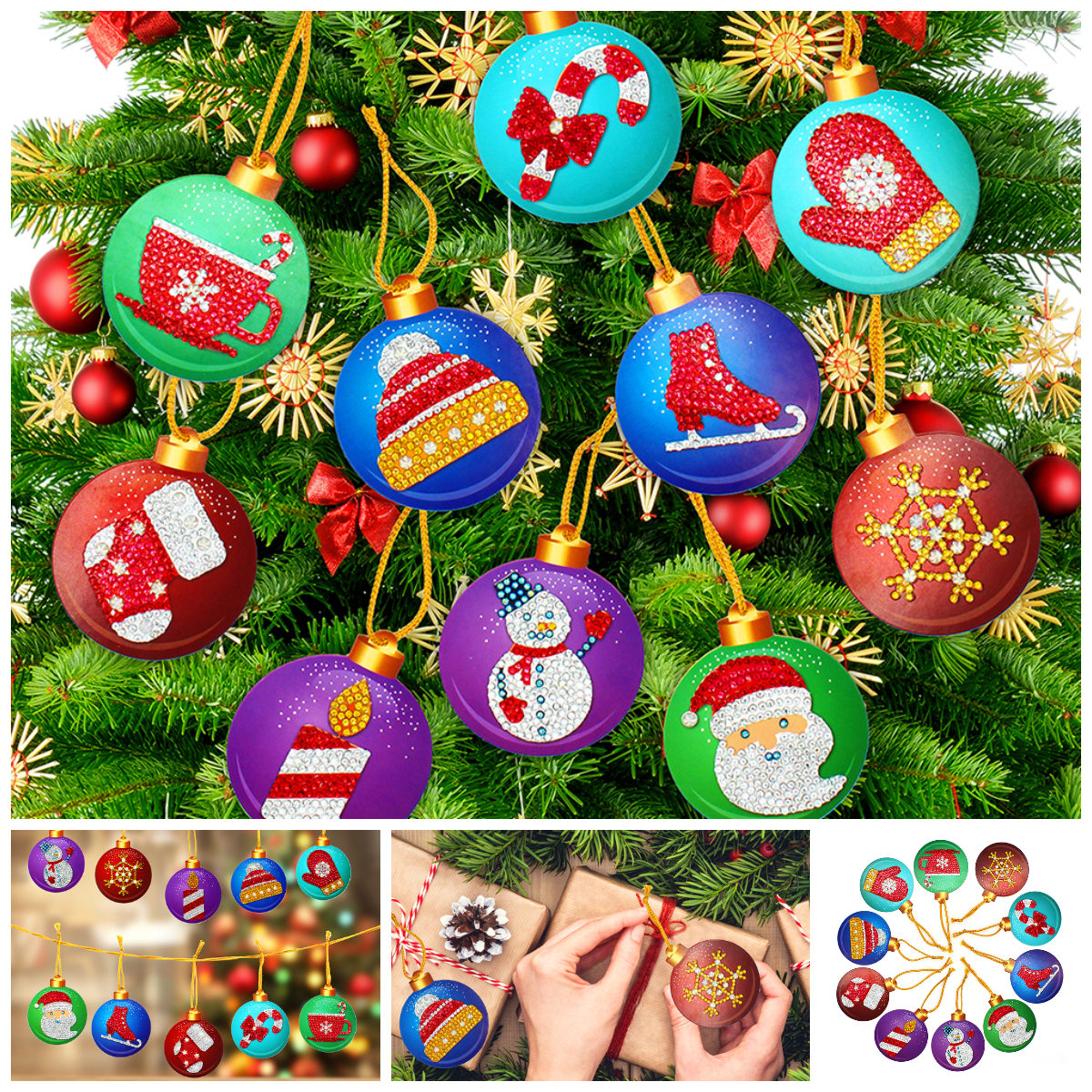10pcs Partial Drills Xmas Tree Pendants(Single Side)