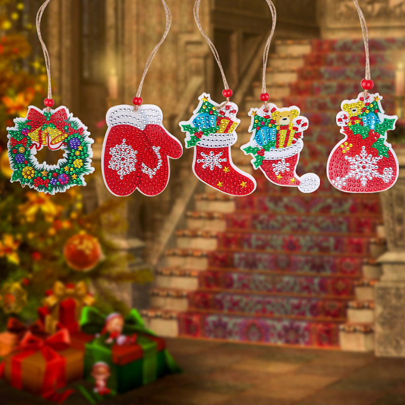 Double-side Christmas Diamond Painting DIY Hanging Pendant Decoration for Christmas Trees Mosaic Kit Drill Dots Crystal Xmas Hanger Ornaments Art Crafts Gifts
