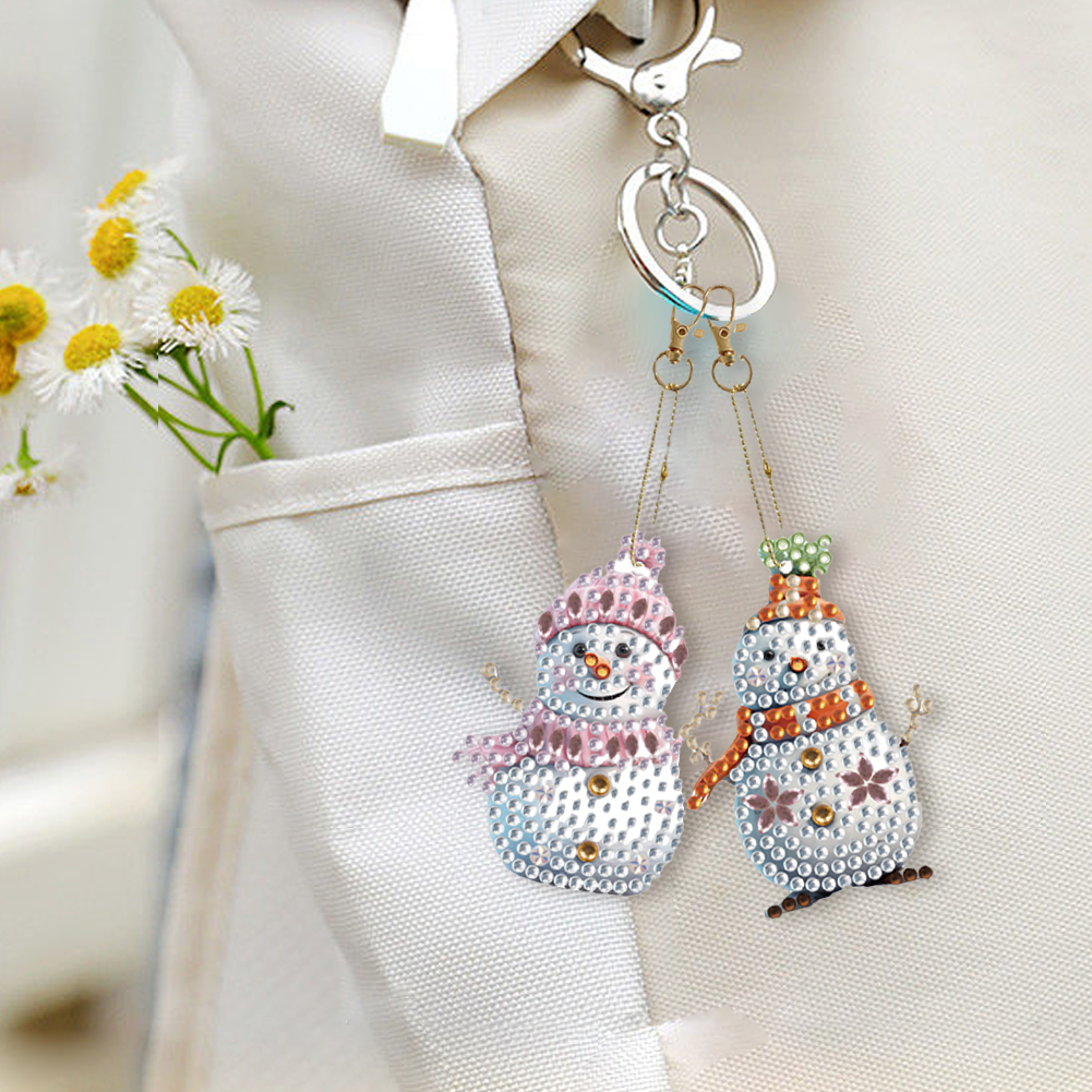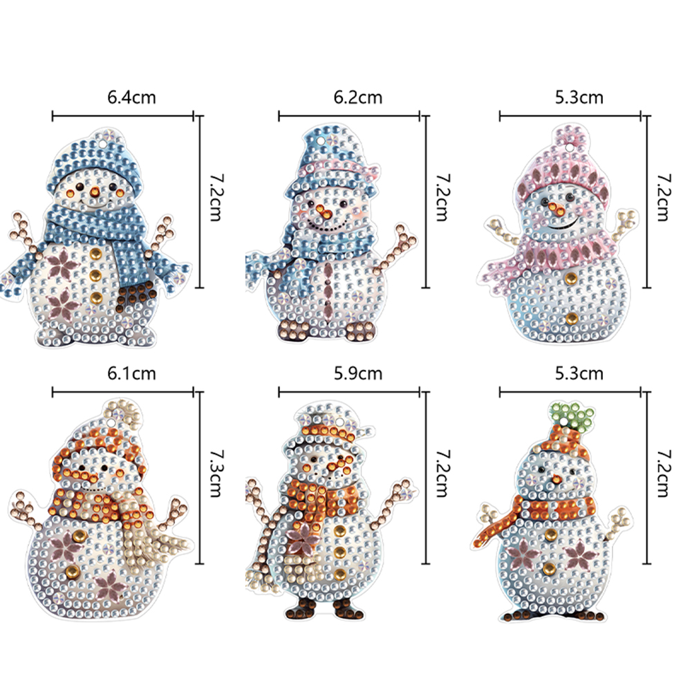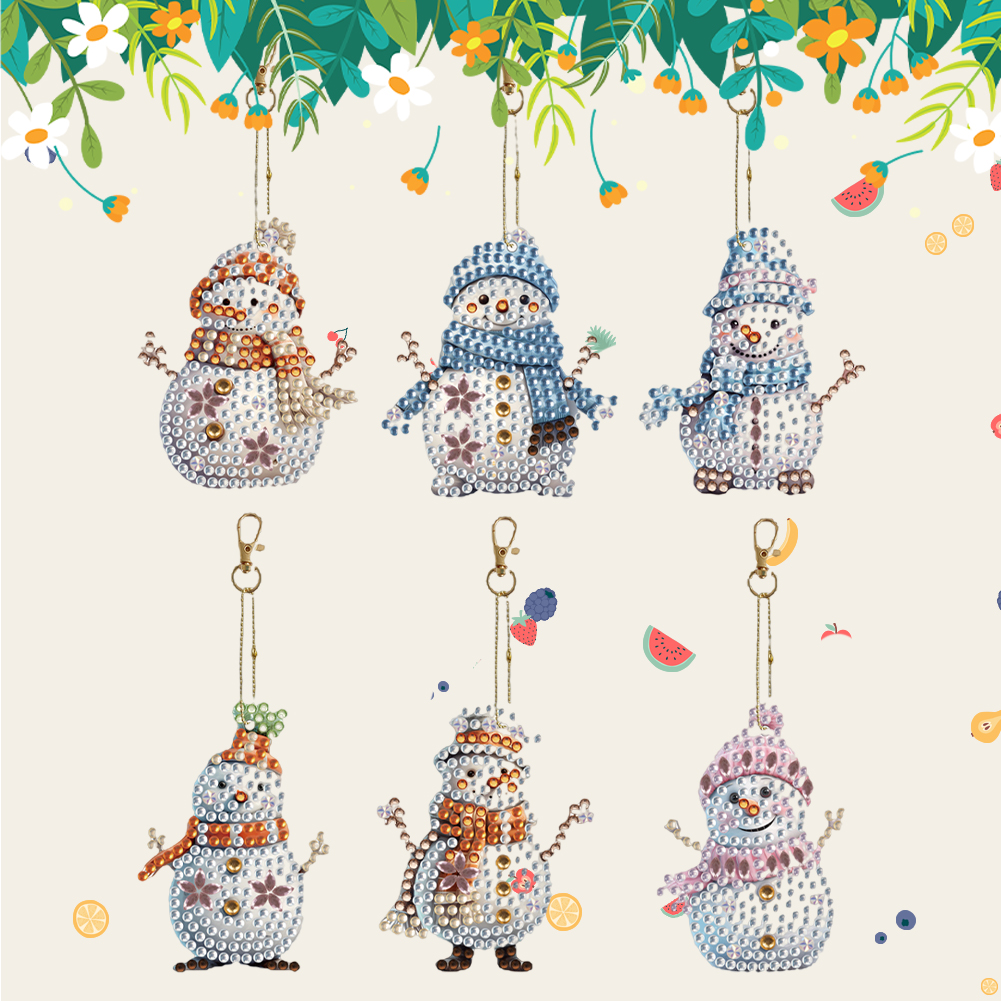6pcs DIY Snowman Diamond Art Key Rings Double Sided Keychain Supplies Gift for Kids
