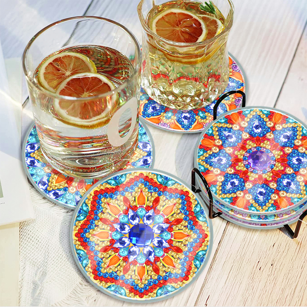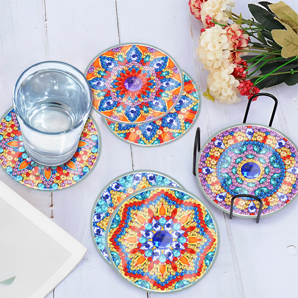 [Upgrade - Waterproof Coaster]6pcs DIY Mandala Coaster Set Holiday Christmas for Adults and Beginners(With Covers)