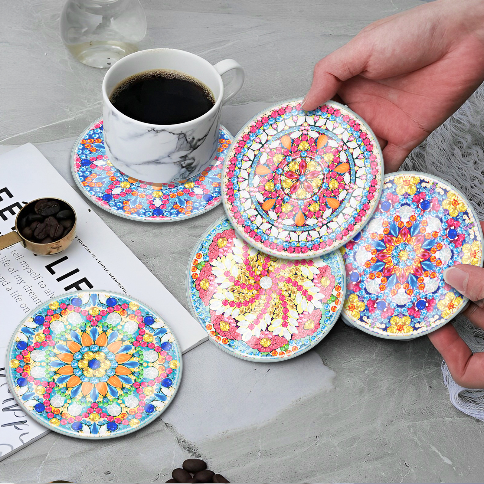 [Upgrade - Waterproof Coaster]6pcs DIY Mandala Coaster Set Holiday Christmas for Adults and Beginners(With Covers)